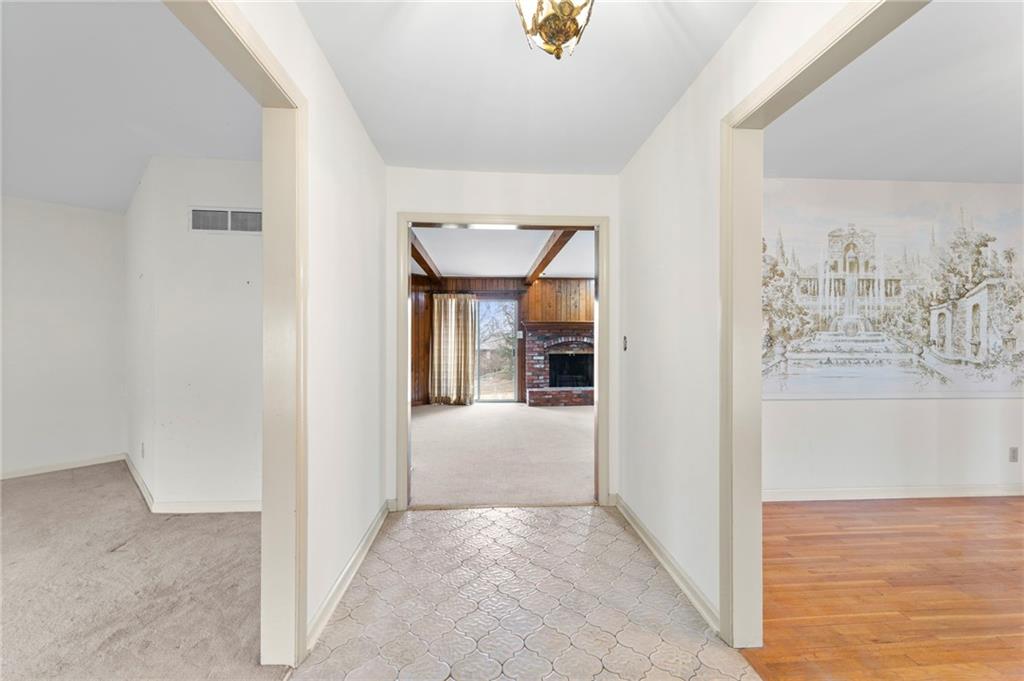 One of Red Bridge's rare true 2-family properties. Legitimate duplex zoning, two fully separate units, two separate entrances, on a 17,760 sq ft corner lot. At 3,368 sq ft, this is the largest duplex currently available in the immediate market. At $118 per square foot, it offers more space per dollar than any comparable sale in the area. Unit 1 (main level): 3 bedrooms, 2.5 bathrooms, 2,257 sq ft. Hardwood floors, exposed beam ceiling, brick fireplace, built-ins, and generous room sizes throughout. Large kitchen with abundant cabinetry. Full unfinished basement with walkout potential. Unit 2 (upper level): 2 bedrooms, 1 bathroom, 1,111 sq ft. Private entrance. Functional and self-contained. Live in one unit, rent the other. Hold both. Or renovate and maximize. The bones and the zoning support all three. Foundation work completed and certified by licensed structural engineer. 7 I-beam braces installed, cracks sealed, perimeter grading improved. Full documentation including initial report and completion letter available in MLS documents. Property needs updating. Priced to reflect condition. The right buyer will recognize the value in the bones, the zoning, and the documentation. New furnace in Unit 1. 3-car attached garage. Sold AS-IS. Inspections welcome for buyer's information only. Center School District. Minutes from Brookside, Ward Parkway, and major highways.