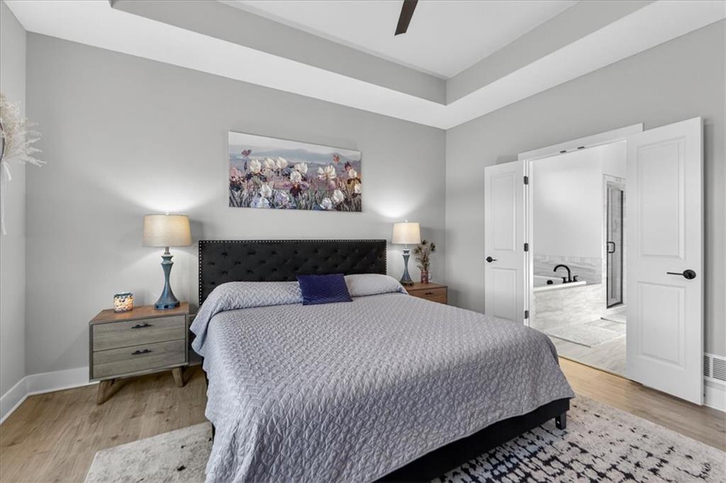 Better than new and priced below current new construction in The Enclave at Boulder Creek! This stunning maintenance-free villa by Roeser Homes delivers everything today's active adults are looking for — main-level living, thoughtful design, and the upgrades already done for you. Unlike new construction in the community, this home already includes upgraded LVP flooring throughout, a recently installed fence, and custom window coverings — saving thousands in post-closing expenses most new buyers face. The open floor plan is bright and easy to navigate, featuring a vaulted great room with fireplace and abundant natural light. The kitchen is perfect for everyday living and entertaining, with quartz countertops, custom cabinetry, large island, gas cooktop, wall oven, microwave, and walk-in pantry. The main-level primary suite is a true retreat with double vanities, soaker tub, tiled walk-in shower, and spacious walk-in closet. A second main-level bedroom and full bath offer the perfect space for guests, a home office, or hobby room — all without navigating stairs. The finished lower level provides wonderful bonus space for visiting family or grandchildren, complete with a third bedroom and full bath. Step outside to the covered patio overlooking your private fenced backyard — ideal for morning coffee or evening gatherings. One more rare advantage — this villa includes a 3-car garage, a true rarity in Boulder Creek where most homes offer only two. Perfect for an extra vehicle, golf cart, or workshop space. The same floor plan currently under construction nearby is priced significantly higher — and still requires fencing, flooring, and window coverings. This is simply the smart buy. Boulder Creek amenities include a clubhouse, pool, pickleball courts, and walking trails, with easy access to shopping, dining, and major highways.