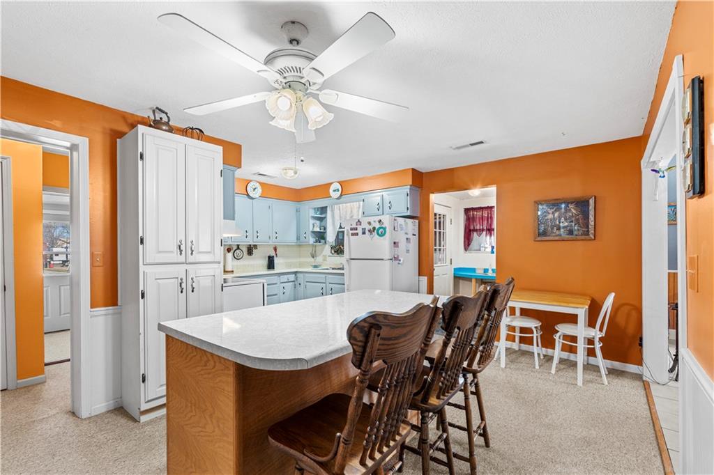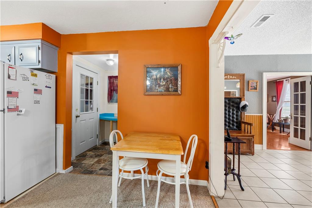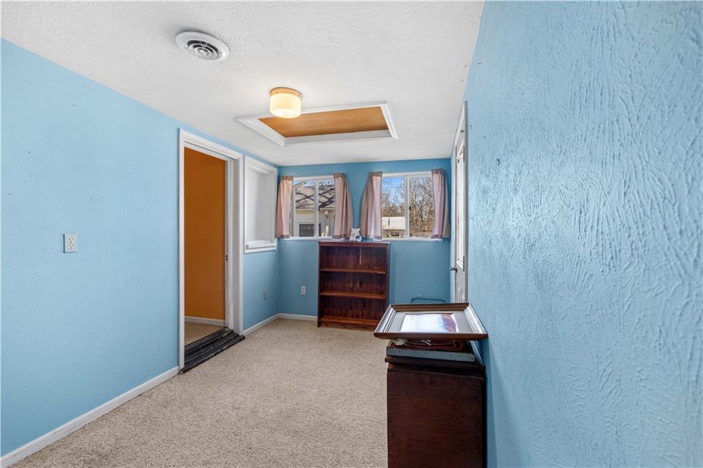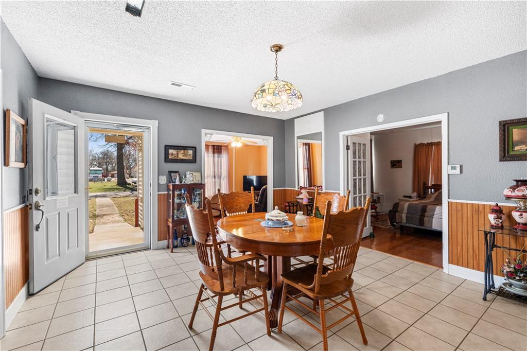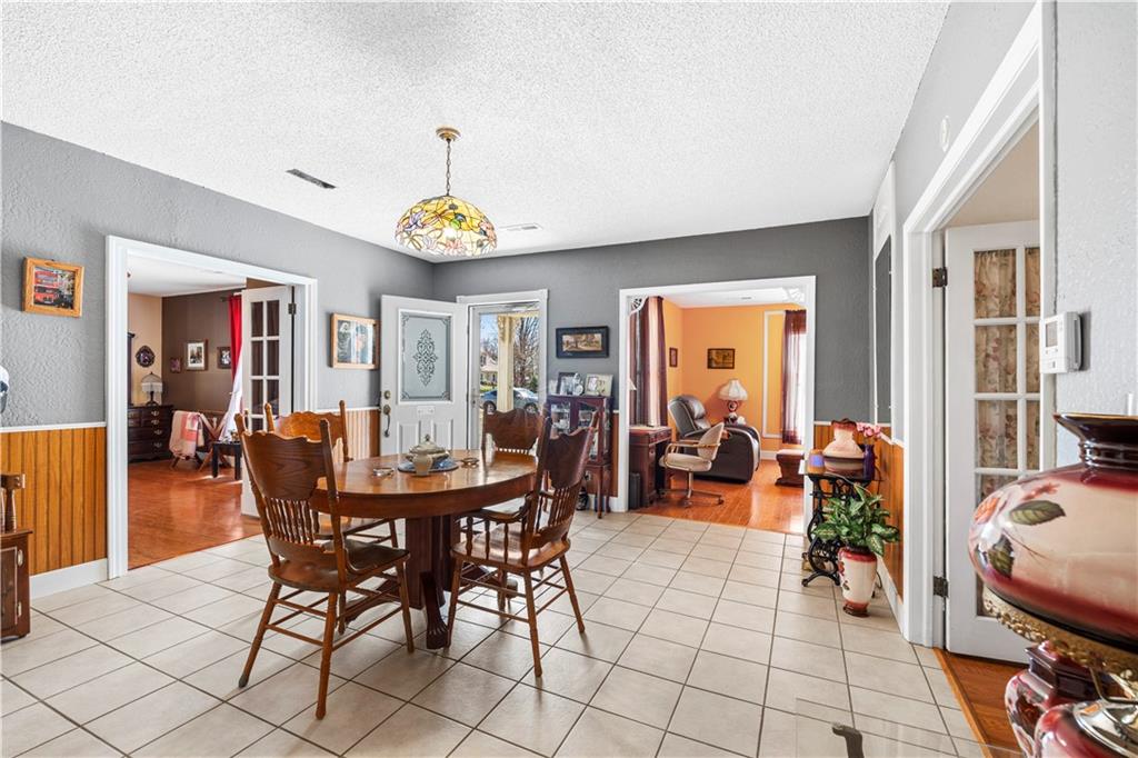This 2 bedroom, 2 bathroom bungalow offers approximately 1,300 square feet of living space with a practical layout and flexible room options. Wood appearance flooring runs through much of the home while vinyl windows allow natural light to fill the main living areas. The formal dining room sits at the heart of the home and serves as a welcoming space for gatherings and everyday meals. The living room flows easily into the dining area, creating a natural connection between the main living spaces. The kitchen provides ample cabinet storage, generous counter space, and a convenient breakfast bar. A main level laundry area located just off the kitchen adds everyday convenience. Both bedrooms are generously sized, including a primary bedroom with a private bathroom featuring a walk-in shower. The second bathroom is accessible from the second bedroom and is also conveniently located for guest use. An additional room offers flexible space that could serve as a home office, hobby room, or extra storage. The layout also provides the option to create a third bedroom if desired, with the current living room easily transitioning into bedroom space while the formal dining room could serve as the main living area and the spacious kitchen accommodate an eat-in dining setup. Outside, the property features a covered front porch, an attached garage with rear entry access, and a detached shed for additional storage. Rear alley access provides convenient garage entry while on-street parking is available at the front of the home. Located in Rich Hill, Missouri, this bungalow offers flexible living space and approximately 1,300 square feet of living area.