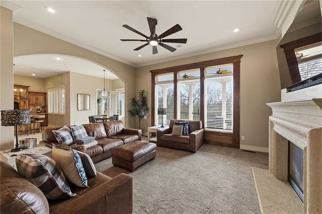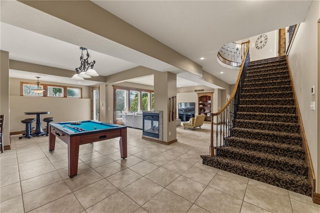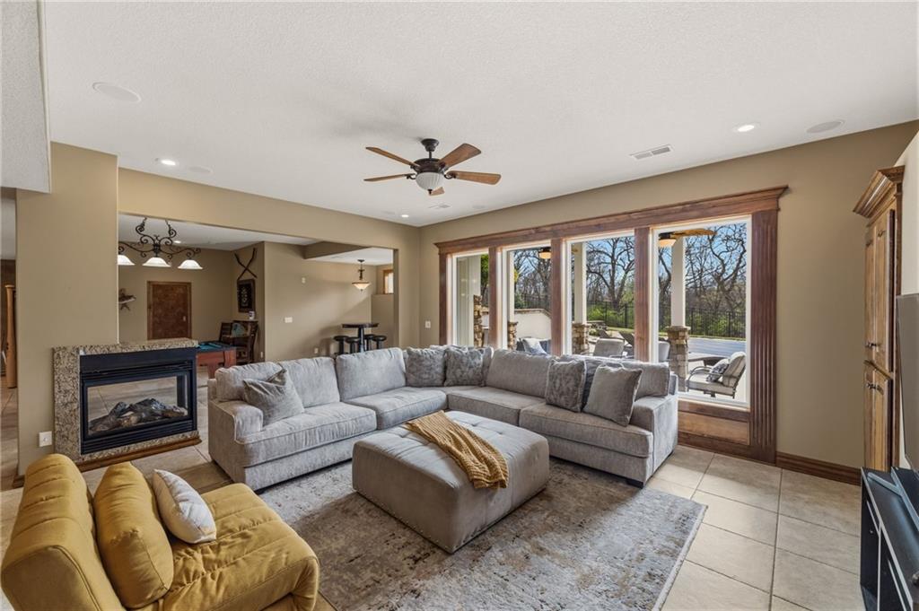 From the moment you approach, this stunning reverse 1.5-story masterpiece commands attention. Grand steel double doors open to over 5,000 square feet of meticulously designed living space, where every detail has been crafted for those who expect nothing but the best.Entertain in style on the main level, where an open-concept layout flows effortlessly from a formal dining room and private office to a breathtaking great room anchored by a gas fireplace. Walls of windows frame your backyard oasis, blurring the line between indoor elegance and outdoor paradise. The chef's kitchen is nothing short of spectacular — featuring stainless steel appliances, a double built-in oven, a 5-burner gas cooktop, expansive granite countertops, a oversized island, and a walk-in pantry. Whether you're hosting an intimate dinner or a grand celebration, this kitchen delivers. Your private retreat awaits in the luxurious main-level master suite, overlooking the sparkling saltwater pool and endless forest beyond. The spa-inspired en suite boasts double vanities, granite countertops, custom cabinetry, a soaking tub, oversized tile shower, and a private water closet. The massive walk-in closet — complete with a center jewelry island — is a statement all its own. The basement is an entertainer's crown jewel. Descend the showstopping central staircase to a world-class entertainment level featuring a full bar, a dedicated theater room with projector and surround sound, a wine room, and a bonus room ideal for a private gym. Step outside into your personal paradise. The backyard is an absolute showstopper — a resort-style saltwater pool, hot tub, and lush professional landscaping, all backed by a wall of pristine, private forest. No rear neighbors. Just nature, serenity, and the sounds of wildlife. Additional highlights include a four-seasons sunroom, Oversized three car garage and fenced in yard. This is not just a home — it's an experience. Schedule your private showing today.