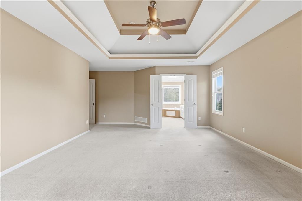 This meticulously maintained home is a great value in this sought after neighborhood! Welcoming entry with curved staircase. Home features hardwood floors in entrance, dining room, kitchen and breakfast room. The spacious great room offers built ins and a cozy gas fireplace. Kitchen boasts painted cabinets, SS appliances and great flow for everyday living. The primary suite features a sitting room, walk in closet, walk in shower and a bath with a jacuzzi tub. Secondary bedrooms offer large walk in closets. Convenient second floor laundry. The W/O lower level is filled with natural light and includes a wet bar and office space. Enjoy treed backyard with a deck and stamped concrete patio. Neighborhood amenities include walking trails, stocked pond, play area, and community pool, all just minutes from the elementary and middle schools. Home is surrounded by a 400 acre nature preserve with lakes, paved trails and abundant wildlife. Located in award winning Blue Valley Schools and convenient to shopping, dining, parks and quick highway access.