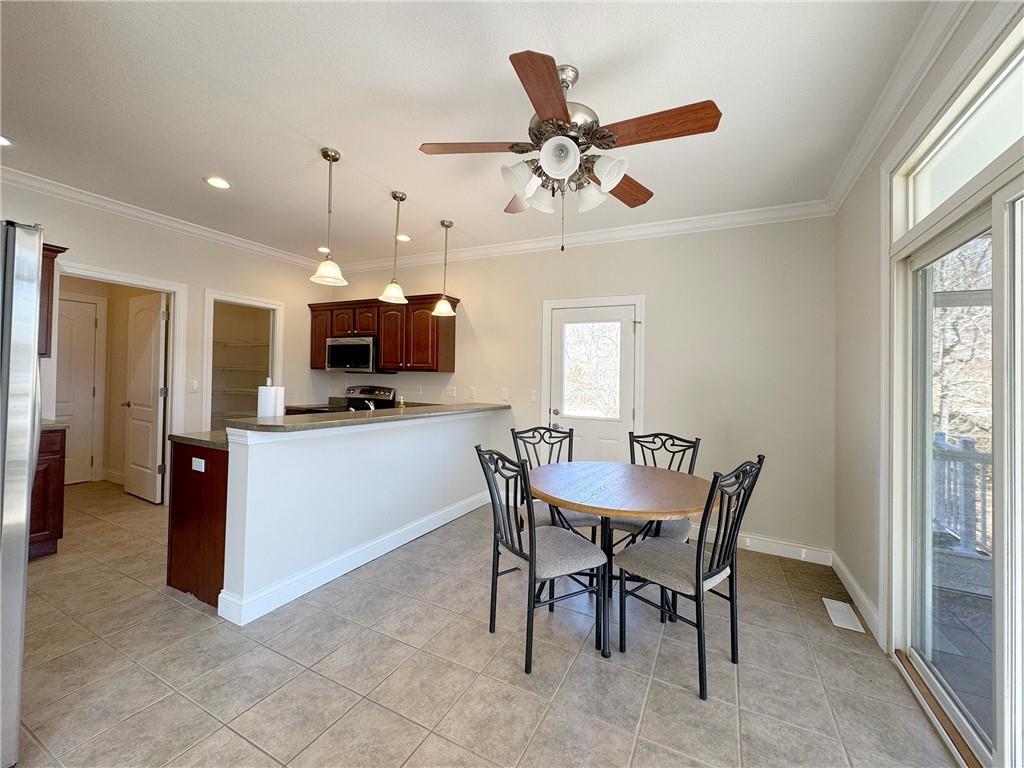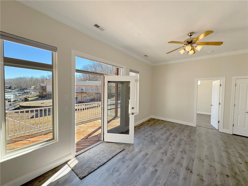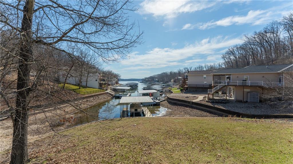 Luxury lakefront living in quiet cove on 26mm! Relax across multiple outdoor spaces, w/ gorgeous main channel views—perfect for morning coffee, sunset cocktails, & watching Margaritaville's July 4th fireworks. Just minutes from the lake’s best waterfront restaurants & attractions, just hop on the boat & let the vacation begin. Inside, this stunning open-concept retreat welcomes you with a grand hearth room featuring cathedral ceilings, gas fireplace, & dramatic windows framing breathtaking water views. Kitchen offers stainless steel appliances, breakfast bar, + sunny breakfast nook that opens to the screened-in porch overlooking the lake. The main-floor primary suite is a private sanctuary w/ its own deck for even more outdoor enjoyment and boasts coffered ceilings, large walk-in closet, spa-inspired bath w/ double sinks + jetted tub & walk-in shower. Walk-out lower level features a spacious lakeside rec room, 3 more bedrooms including a primary-style suite w/ full bath & supersized walk-in closet. Fresh Paint. New Carpet. 12x30 dock, lift + Monark Seville 24' pontoon w/150 Yamaha outboard. Boat Ramp. Paved streets- NO GRAVEL. HOA covers water/sewer. Underground utilities. Level parking 4+ & attached garage. No STR allowed.