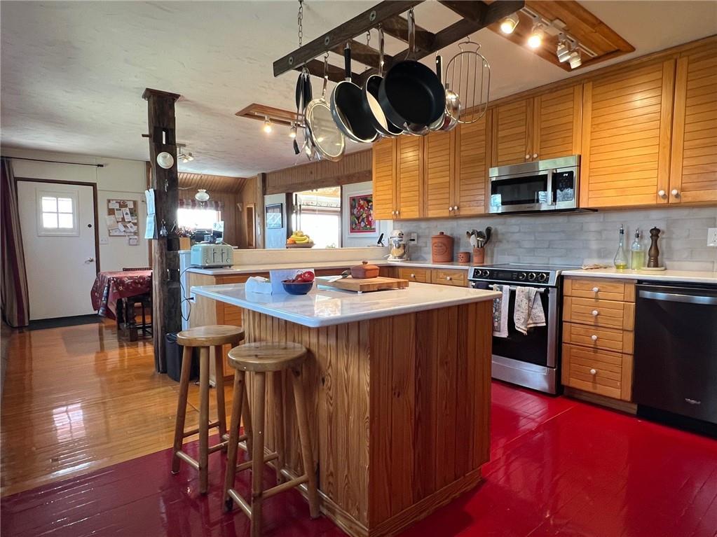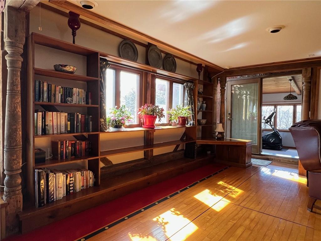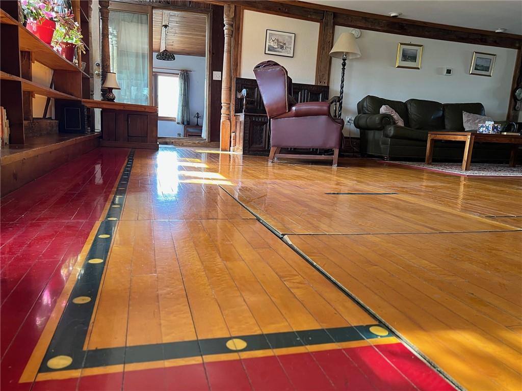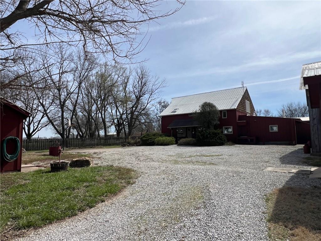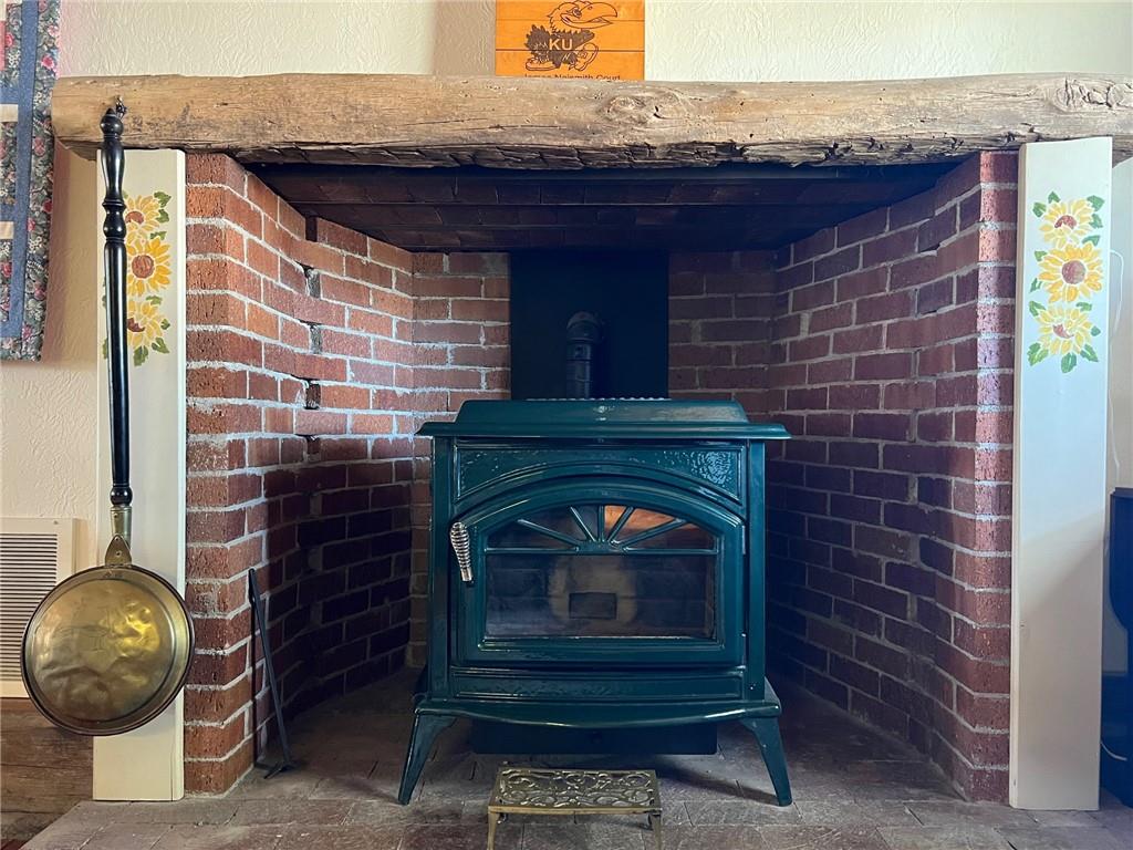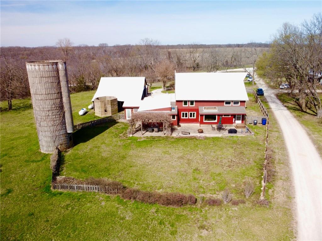 Located 8 miles south of Lawrence in the unincorporated town Pleasant Grove. The unique barn home conversion resides on one of the highest plateaus in Douglas County on 11 acres. This Gable Barn with a hay mow was part of an early European settlement in the 1870s. For approximately 100 years it served as a barn for a productive dairy farm. In the 1970s it was converted into a home. The Brown family had the opportunity to purchase the original basketball flooring from Allen Fieldhouse. They repurposed all the flooring except the K piece, installing it in throughout the home. Much of the 3,600 square feet contains this flooring. Just think, famous basketball player played on this floor! The current owners have enjoyed being the stewards for 20 years, improving the property with recent bathroom and kitchen renovations, new double pane windows and a high efficiency HVAC system. The property contains a mix of green space and old growth timber to the west. The compound still retains a grain silo, old windmill pump, barn, 1950s storage building (could be an art studio or office) and a newer one car garage. This is a magical place. It gushes with a rural Kansas vibe and rich KU basketball history. Who’s next?