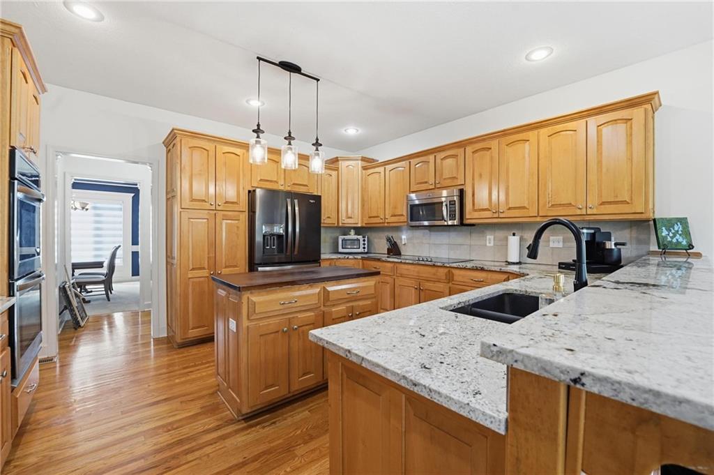 Don't miss the exceptional value in The Fairways! This stunning 4-bedroom, 3.5-bathroom home offers an unparalleled living experience. Enjoy fresh exterior and partial interior paint, new garage doors, and meticulous landscaping for impressive curb appeal. The open kitchen boasts newer appliances, double ovens, an island, and granite countertops, flowing seamlessly into the dining and eat-in areas that open to a charming patio. The spacious family room and the mid-level den, each feature fireplaces – perfect for entertaining or quiet evenings. All generous sized bedrooms, including new carpet in 2 of them.The primary suite also offers new carpet, vaulted ceilings, a walk-in closet, jetted tub, and dual vanities, plus convenient upstairs laundry. The lower level is an entertainer's dream with an library/office featuring a 15-foot ceilings with custom built-ins, a third fireplace and french doors. You'll love the dual staircase leading to an exercise room, and a theater/family room. Ample storage throughout! With 6-year-old HVAC and approximately a 10-year-old roof, this home features a lot of crown molding and beautiful hardwood floors. All appliances stay with the home. Located just minutes from shopping, top-rated schools, the airport, major highways, and two golf courses, it truly has something for everyone. Schedule your showing today – this one won't last!