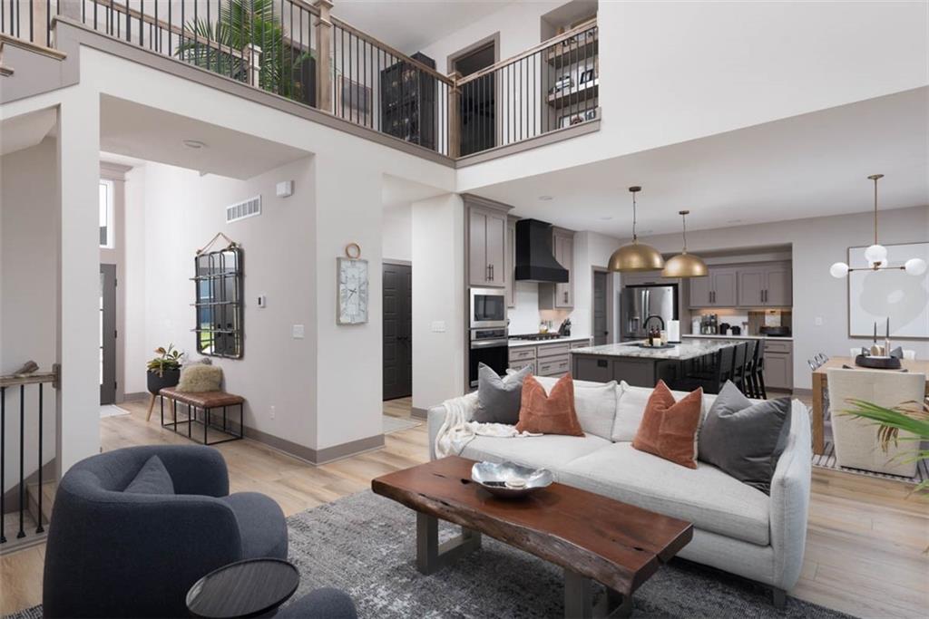 Designer’s personal KC Custom Home…bold, refined, and designed to be experienced, not just seen. Striking curb appeal pairs modern lines with warm stone accents, setting the tone before you even step inside. Soaring ceilings in the 2-Story great room and walls of windows fill the main level with natural light, creating an airy, inviting feel throughout. The living room makes a statement with its dramatic height and beautifully detailed fireplace, flowing seamlessly into a thoughtfully designed kitchen with a large statement island, custom-selected finishes, upgraded fixtures, built-in buffet, and a walk-in pantry that keeps everything effortlessly organized. Designed for both everyday living and hosting, the main level offers a spacious dining area overlooking the covered deck, along with a functional mudroom area and half bath that adds ease to daily routines. The primary suite delivers a true retreat with generous space, a spa-like bath with dual vanities and an oversized shower, and a boutique-style walk-in closet. Additional bedrooms are spacious and well-appointed, offering comfort and privacy for all. The lower level expands your living space with a second living area, stylish bar, additional bedrooms, full baths, and a dedicated exercise room, perfectly suited for entertaining or unwinding. Step outside to a covered deck that feels like an extension of the home, overlooking an XL cul-de-sac lot with a reinforced concrete slab ready for a hot tub and direct gated access to the neighborhood pool. Located just moments from Lake Lotawana’s local favorites and directly across from Stonehaus Farms Winery, this home offers not just beautiful design, but a lifestyle to match! Complete with designer-selected finishes, upgraded lighting, plumbing fixtures, custom blinds, and extended-height garage ceilings that truly set it apart. Truly a must see!