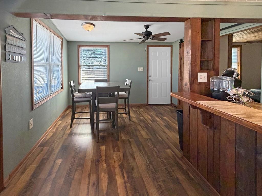 Enjoy the ease of lake living in this updated home with a swim dock, offering convenient access to the water for boating, fishing, and outdoor recreation. Renovated in 2017, this property features two bedrooms and an open-concept layout connecting the living, dining, and kitchen areas, creating a comfortable space for everyday living and entertaining. The kitchen includes appliances, and a stacked washer and dryer are located in the bathroom for added convenience. A deep soaking tub with a shower wand provides a relaxing place to unwind. Situated near the 80 mile marker of the Lake of the Ozarks, this property offers access to a variety of recreational opportunities. Set on two lots, there is additional space for future improvements such as expanding the home or adding a garage. The property is being offered furnished, providing a move-in-ready opportunity.