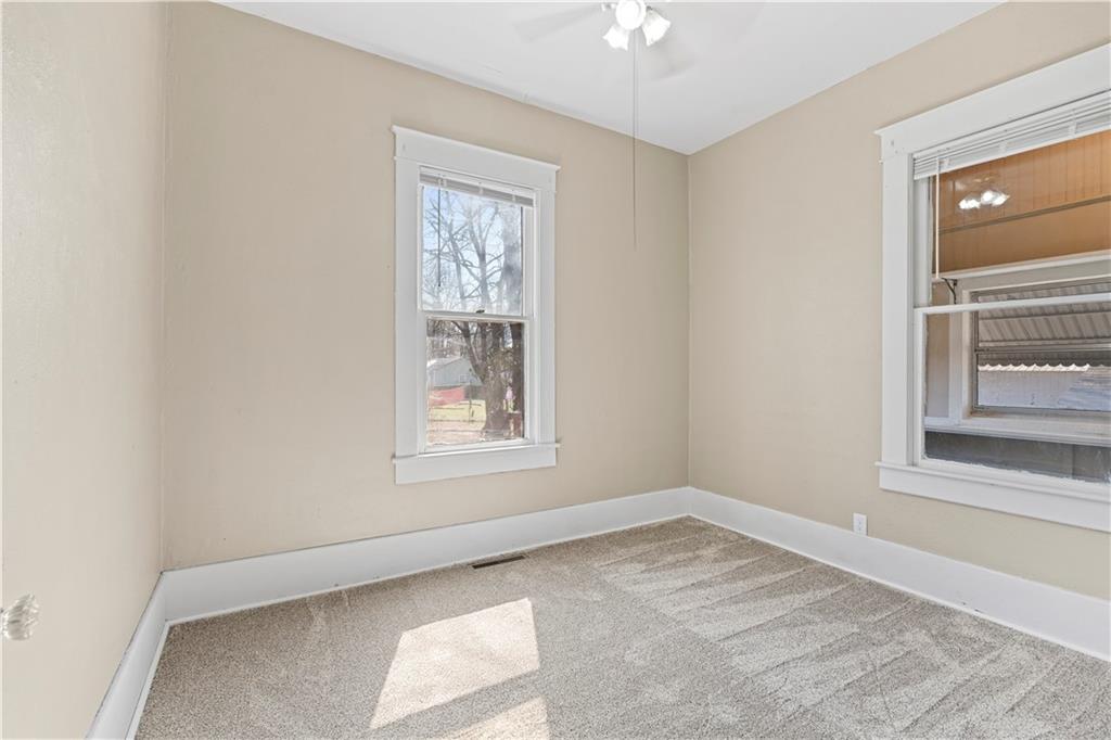 Located on a corner lot in Nevada, Missouri, this single family bungalow offers the kind of space and flexibility that’s getting harder to find. From the moment you walk in, you’ll notice the tall ceilings, natural light, and layout that gives you room to actually live in the home, not just fit into it. The main level features two main level bedrooms with new carpet and fresh interior paint, along with spacious living and dining areas that connect easily and feel open without losing definition. In total, the home offers three bedrooms, including a non conforming bedroom upstairs. You’ll also find unfinished attic space that provides potential for additional living area, storage, or a home office setup. Located just a short drive to downtown Nevada, with convenient access to schools, clinics, the hospital, and other healthcare options, this property offers both location and livability. Outside, the covered front porch, fenced yard, and detached garage provide both curb appeal and everyday function. This property is best suited for conventional financing and presents an opportunity for a variety of buyers, whether you’re looking for a place to call home or a potential rental or long-term hold. If this one checks the boxes you’ve been looking for, reach out to the listing agents to take a closer look.
