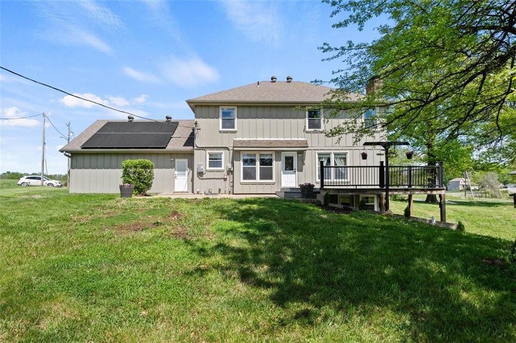 Welcome to this alluring move in ready 4 bedroom – 2.5 bath home; sitting on an expansive .61 acre lot. Outside there is plenty of room to relax, garden, or entertain without the restrictions of a homeowners association. Recently updated landscaping greats you at the front door. The radiant heated main floor provides a working wood burning fire place turning the living room into a space of ambiance. An open concept leads to the peaceful kitchen view overlooking the expansive back yard and a 16 X 20 maintenance free Trex deck with guardrail. All kitchen appliances stay with the home. A gas stove is hard to find and this home comes with one! The enclosed main floor laundry washer and dryer stay as well. A .5 bath is conveniently located across the hall. The dining space and den/office round out the main floor. Up the stairs to the second floor is where you will find the master bedroom/bath, second full bath and 3 additional rooms. Wake up in the morning and step onto a heated electric floor in the master bedroom and master bath adding a cozy feel all year long. The recirculating hot water provides the spacious second floor bathroom and shower with hot water in seconds. Double pane windows are installed throughout the home for energy efficiency. The solar array makes this home an eco-friendly residence harnessing renewable energy. The solar panels on the roof stay with the home. There is no outstanding contract on the solar array. This home offers a 30 amp Tesla EV charging station. Feel safe and secure knowing the doorbell/camera system is installed and staying. A two car garage with a two lane driveway offers additional parking spaces. The basement below serves as storage space and a storm shelter. This home sits in Louisburg where you find small-town charm with the modern convenience of being close to the city.