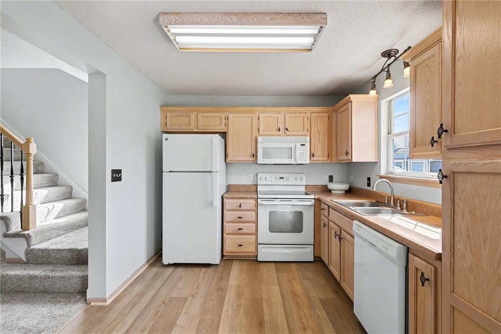Welcome to Oak Ridge Meadow Condos end unit, for the most windows and space. Walk into the Living room with fireplace and opens into kitchen. From kitchen sliding door goes onto your patio with corner lot with plenty of yard. Upstairs has 2 large bedrooms with vaulted ceilings, full bathrooms and walk in closets. Laundry in between the two for convenience. Wonderful top rated Blue Springs schools and close to all shopping and restaurants in Blue Springs and Lees Summit! Appliances, HVAC and Water heater 5 years old. MOVE IN READY!!