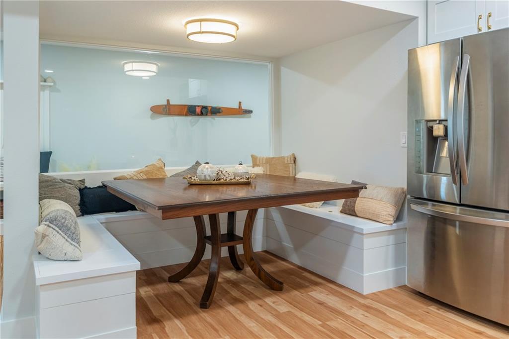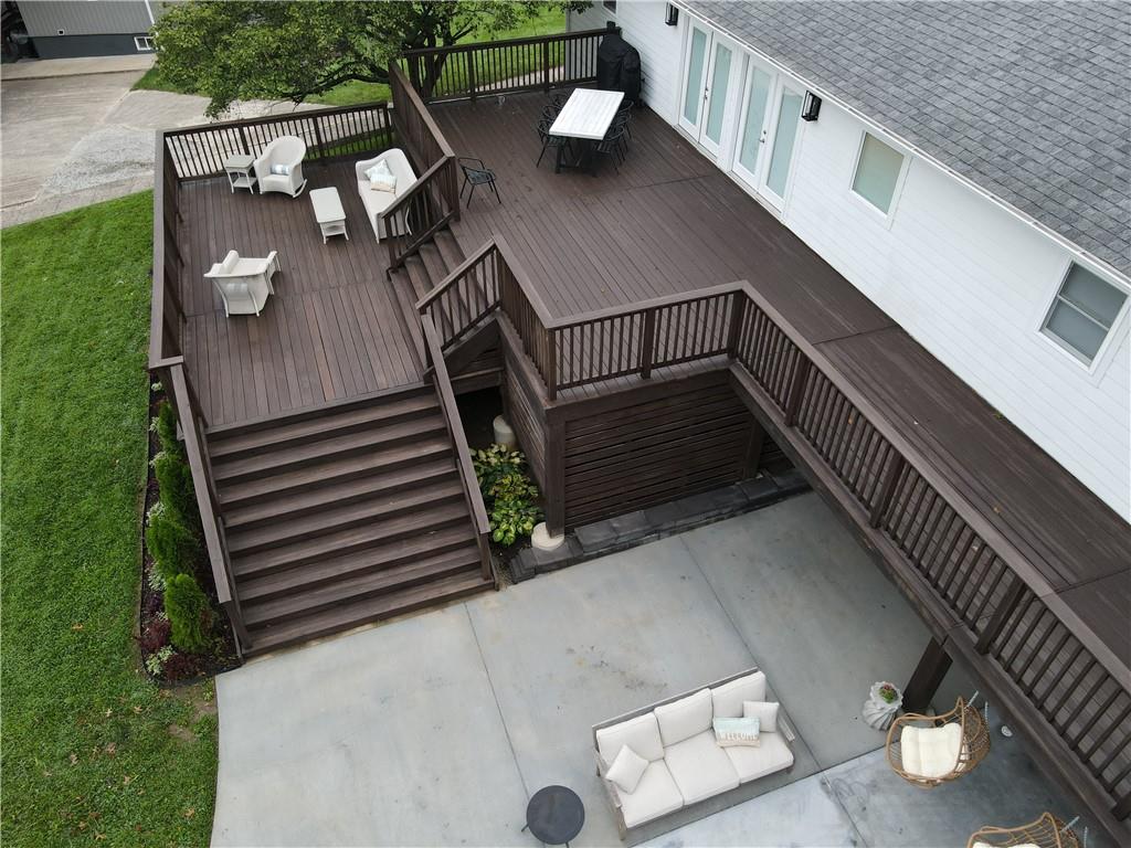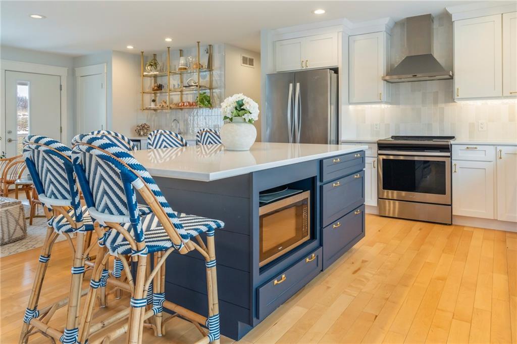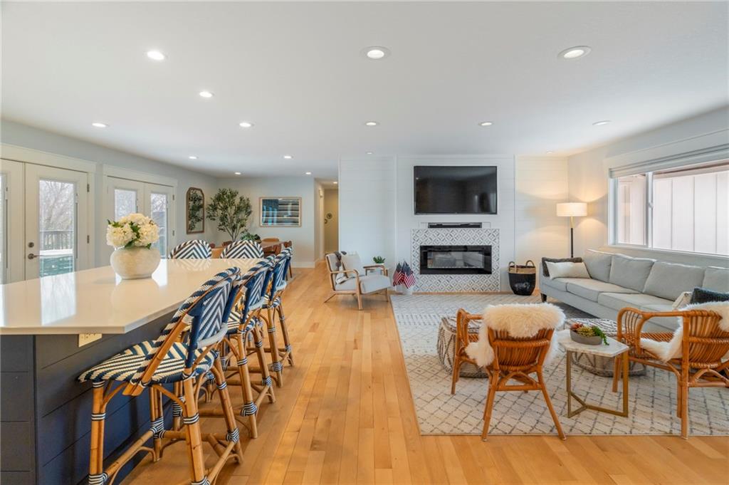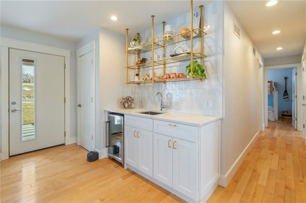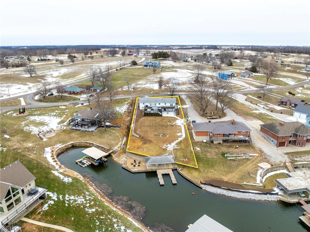 Modern, fun, and Turn-Key, this lakefront retreat is ready for you to enjoy! This beautifully remodeled 5-bedroom waterfront home is designed for ultimate summer living, complete with a dock and pavilion perfect for soaking up the sun. Move-in ready and thoughtfully designed for comfort and convenience, the home features two kitchens, two laundry areas (one on each level), and five spacious bedrooms. Step outside and enjoy the spacious deck, beautiful sidewalk down to a concrete patio right at the water’s edge, creating the perfect setting for relaxing or entertaining. Inside, you’ll love the bright, refreshing finishes that truly bring lake life to life. The main level showcases a soothing color palette, hardwood floors, and updates throughout, including new HVAC, plumbing, electrical, siding, and windows, this home has been remodeled down to the studs. The kitchen features stunning quartz countertops, stainless steel appliances including a dishwasher, and a stylish wet bar. The lower level is just as impressive, offering a second kitchen with dishwasher, eat-in dining area, 2 bedrooms, and two twin-to-king trundle daybeds. Additional highlights include built-in cubbies, banquette seating, and beautifully tiled bathrooms. Conveniently located near the main entrance and just moments from the clubhouse, salt water pool, marina, and beach, you’ll love having summer fun right at your fingertips—including food trucks within easy reach. Lake life is calling, don’t miss your chance to make it yours! The yard is in the process of being seeded and reworked due to newly installed lawn irrigation and recent improvements.