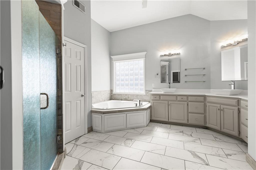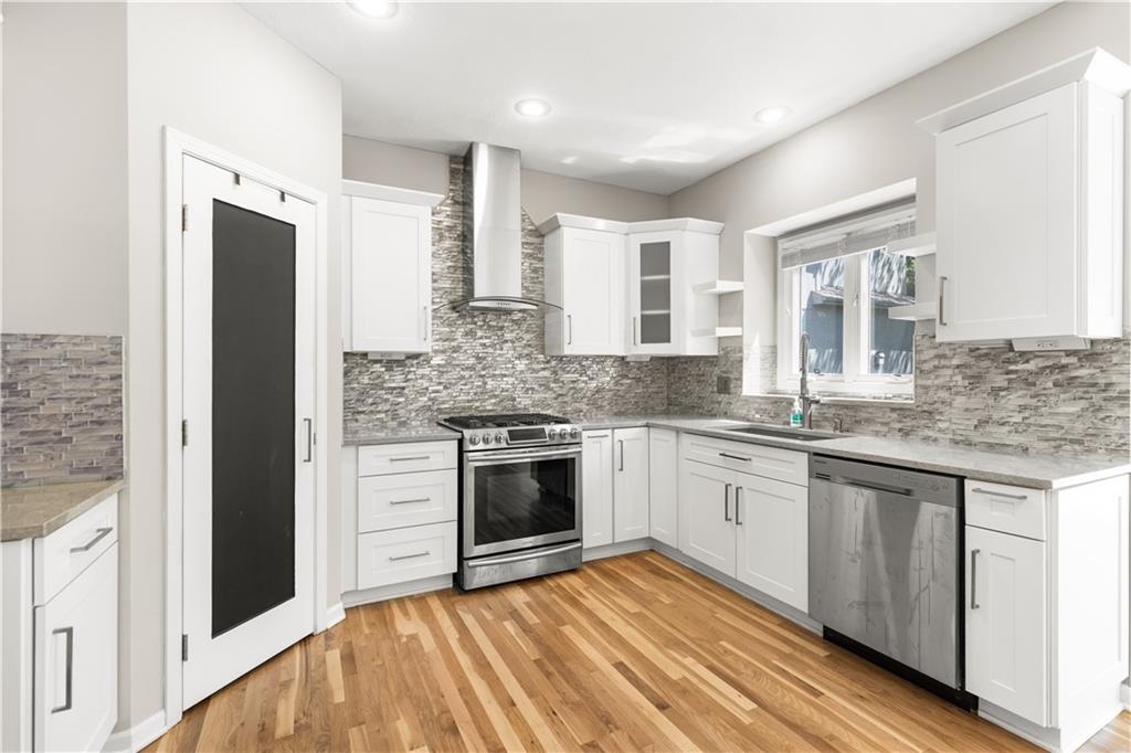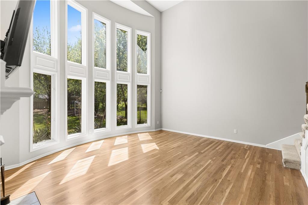 Back on Market with new carpets on the 2nd floor and the stairs. Newly refinished wood floors. Welcome to this beautifully updated home in the highly sought-after Overland Park area, offering the perfect blend of comfort, style, and modern upgrades. Nestled on a quiet street, this spacious residence features an inviting open floor plan designed for both everyday living and effortless entertaining. Step inside to a stunning remodeled kitchen that is truly a cook’s delight—featuring an abundance of cabinetry, quartz countertops, a stylish tile backsplash, stainless steel appliances, and a show-stopping oversized quartz island. The kitchen opens to a generous dining and hearth area, creating the perfect gathering space, and flows seamlessly out to a large patio overlooking a beautiful, level backyard. The main level showcases newly refinished hardwood floors throughout, enhancing the home’s warmth and elegance. A spacious great room impresses with soaring ceilings, a see-through fireplace, and dramatic all-new floor-to-ceiling windows that flood the space with natural light. The inviting two-story entry is flanked by a formal dining room and a versatile den or home office. Upstairs, the expansive primary suite offers plenty of room for a sitting area, along with a walk-in closet and a beautifully updated en-suite bathroom. Three additional oversized bedrooms provide ample space—one featuring its own private updated bath, while the other two share a convenient Jack-and-Jill updated bathroom. The finished daylight lower level expands your living space with a full bathroom and offers plenty of unfinished area ideal for storage or a workshop. With its thoughtful updates, spacious layout, and prime location near top-rated schools, parks, shopping, and dining, this home truly has it all. Don’t miss your chance to make it yours!