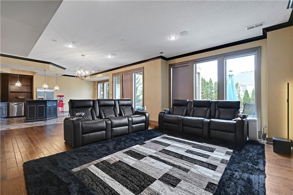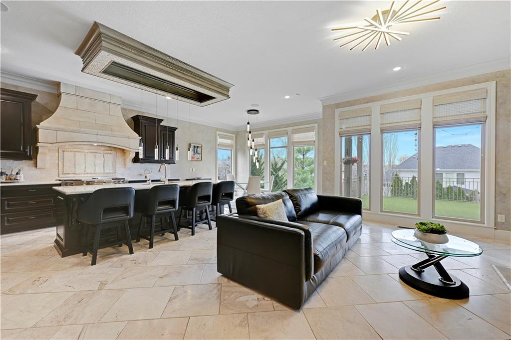 Experience elevated living in this exceptional, one-of-a-kind residence designed for unforgettable family living and effortless entertaining. Every detail has been thoughtfully curated to impress, from the resort-style outdoor retreat to the high-end finishes throughout all three levels. Step outside to your private oasis featuring a stunning in-ground gunite saltwater pool, an oversized spa, and lush, professionally designed landscaping—perfect for relaxing or hosting gatherings. Inside, the walk-out lower level is an entertainer’s dream, complete with a full theater space, a sophisticated bar, and a dedicated kids’ movie and playroom. The heart of the home is a chef’s kitchen equipped with top-tier appliances, ideal for both everyday living and upscale entertaining. Luxurious materials such as travertine, marble, and natural stone add elegance and timeless appeal throughout. Modern convenience meets refined design with advanced home automation, including motorized shades, a seamless whole-home audio system extending to outdoor spaces, and beautifully appointed smart bathrooms with cutting-edge features. Situated on a quiet, family-friendly cul-de-sac, this home offers a rare combination of privacy, security, and community charm. A striking floating staircase serves as a dramatic architectural centerpiece, while the home’s distinction is further elevated by its feature as a showcase property in KC Homes & Style Magazine. This extraordinary custom-built estate is truly a standout—where luxury, comfort, and lifestyle come together.