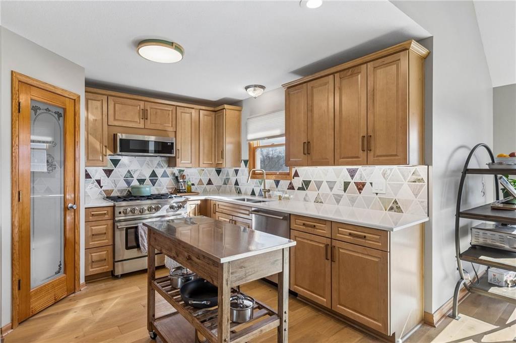 Introducing this impeccably maintained home nestled Trimble, MO away from the hustle and bustle—where thoughtful updates, timeless style, and generous space come together beautifully. From the moment you step inside, you’ll appreciate the care and attention to detail throughout. At the heart of the home is a newly remodeled kitchen designed to impress, featuring stunning quartz countertops, light oak hardwood flooring, and a designer backsplash that perfectly blends modern elegance with everyday functionality. Feel like a five star chef cooking on the new, oversized 6-burner gas cooktop. A spacious pantry keeps everything organized, making this kitchen as practical as it is beautiful. The living room offers a warm and inviting atmosphere with a striking stone fireplace and sliding doors that lead to a 12x30 patio—ideal for entertaining or enjoying peaceful outdoor moments. Step outside to the Trex deck, perfect for gatherings or relaxing evenings. The expansive multi-level primary suite is a true retreat, complete with a cozy sitting area, an impressive 11x17 walk-in closet, and a spa-like bath designed for ultimate relaxation. Additional highlights include a 3-car garage with an extended 34-foot depth, providing ample space for vehicles and storage, and a basement with soaring 13-foot ceilings—ready for your vision, whether it’s additional living space, a home gym, or workshop. Natural wood cabinetry and elegant 6-panel doors add warmth and character throughout the home, while a newer furnace/HVAC system ensures energy efficiency and peace of mind. This exceptional property truly has it all—style, comfort, and an unbeatable location. Schedule your showing today and fall in love at first sight!