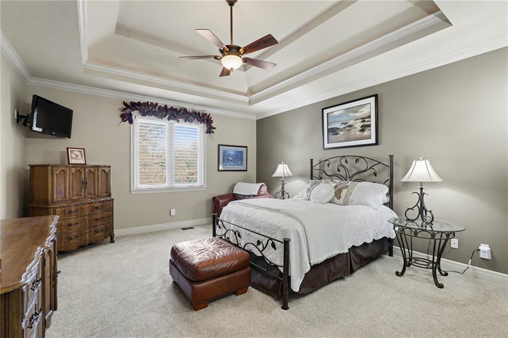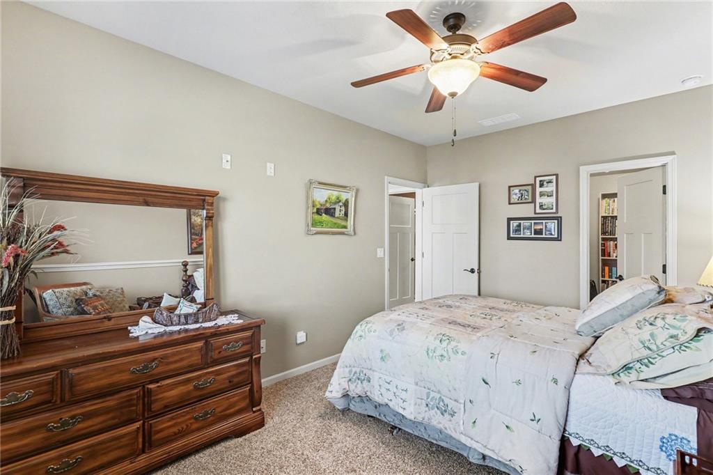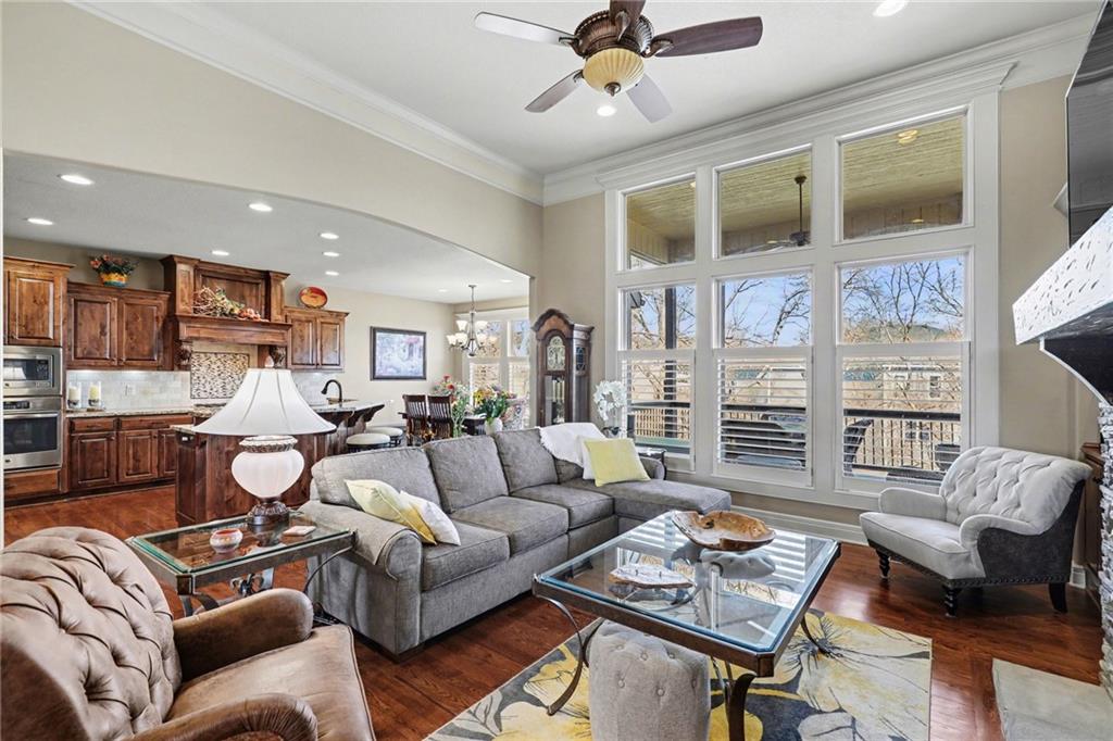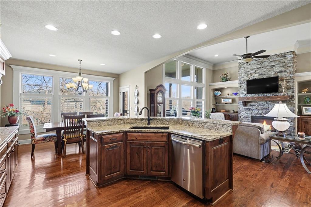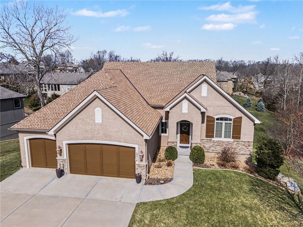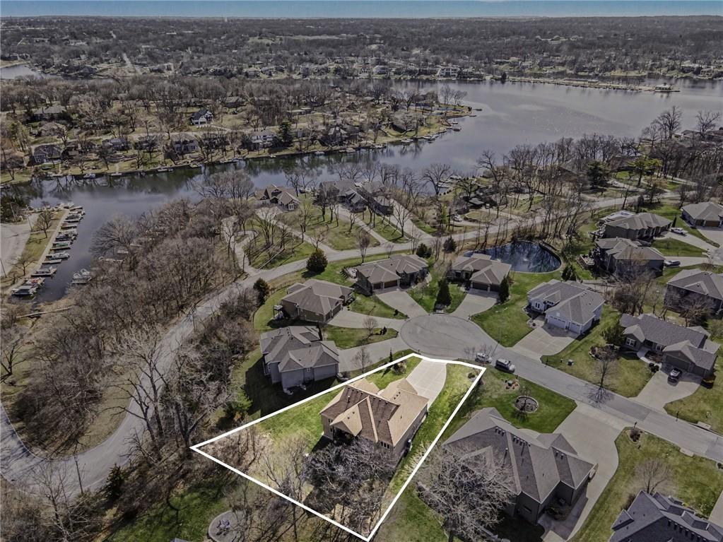 Here is your chance to get into Weatherby Lake to enjoy all the lake activities for the summer! Boating, swimming, kayaking, paddleboard, fish or just relax and soak up the sun! West Ridge area on the West side of the city, is the newest area of homes and this is your opportunity to own a gently lived in and meticulously maintained main level living home. Situated on a culdesac lot with mature trees to enjoy nature while sitting on your covered deck. The open concept plan has a wall of windows to enjoy the views, stone fireplace surrounded by custom built ins, chefs kitchen with gas cooktop / walk in pantry / spacious granite counter island, all perfect for your gatherings. With most of the main level having gleaming hardwood floors and rich architectural details including extensive crown molding and lofty ceilings. A primary suite with all the upgraded details is on one side of the home to create a private retreat. The primary bath includes a tub, walk in tiled shower, double vanity with granite counters and a light filled walk in closet. On the opposite side of the home is the secondary bedroom and second full bath for guest use or private entry from the bedroom. The walkout basement is perfect for entertaining with a granite counter wet bar area, media area and game area. This walks out to a lower level deck to the backyard. Bedrooms 3 and 4 are in the basement with amazingly large walk in closets! The 3rd full bath with granite and tile features is situated between the bedrooms. Plenty of unfinished storage to support your needs. Additional features include custom plantation shutters, custom window coverings, water purification system, kitchen refrigerator stays, zoned heating and cooling, and 1 year old roof and gutters. Flat, South facing driveway with 3 car garage. Come join this vibrant community with activities for all ages. Small town feel and private lake for residents to enjoy!