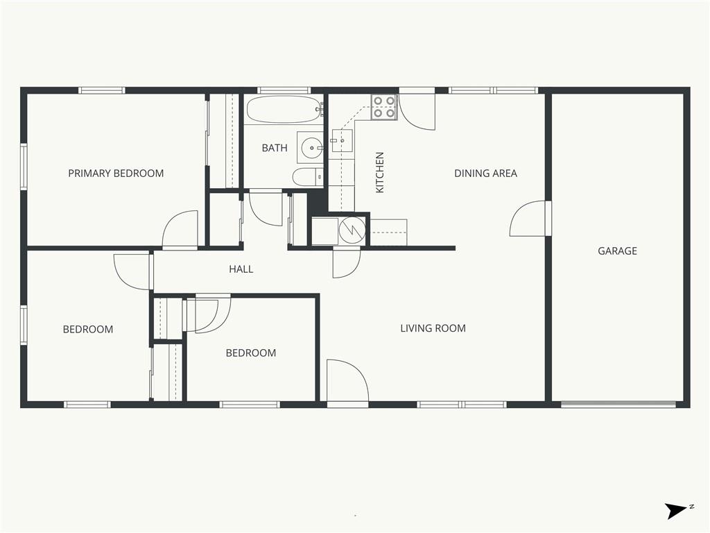 Top to bottom Remodel. New Roof 2026, All new exterior: New siding, Insulation, and blown insulation in Attic; New Windows, and New Garage Door. Comfortably situated on a quiet street, huge mature trees, and ready to go! All new kitchen and appliances, Stone backsplash, with a smartly integrated Washer and Drier combination in the kitchen. New kitchen cabinets, Gas Range, Dishwasher, granite tops, and new vinyl plank flooring. Generous living, and huge primary bedroom! Completely renovated bath, with fixtures, new vanity, new toilet, New HVAC, and Water Heater. New Doors, all light fixtures, and hardware throughout. New exterior lighting to include motion detection. New driveway and approach. Freshly seeded front and back lawn, and newly installed landscaping. Bring your choosiest! This home is Awesome!