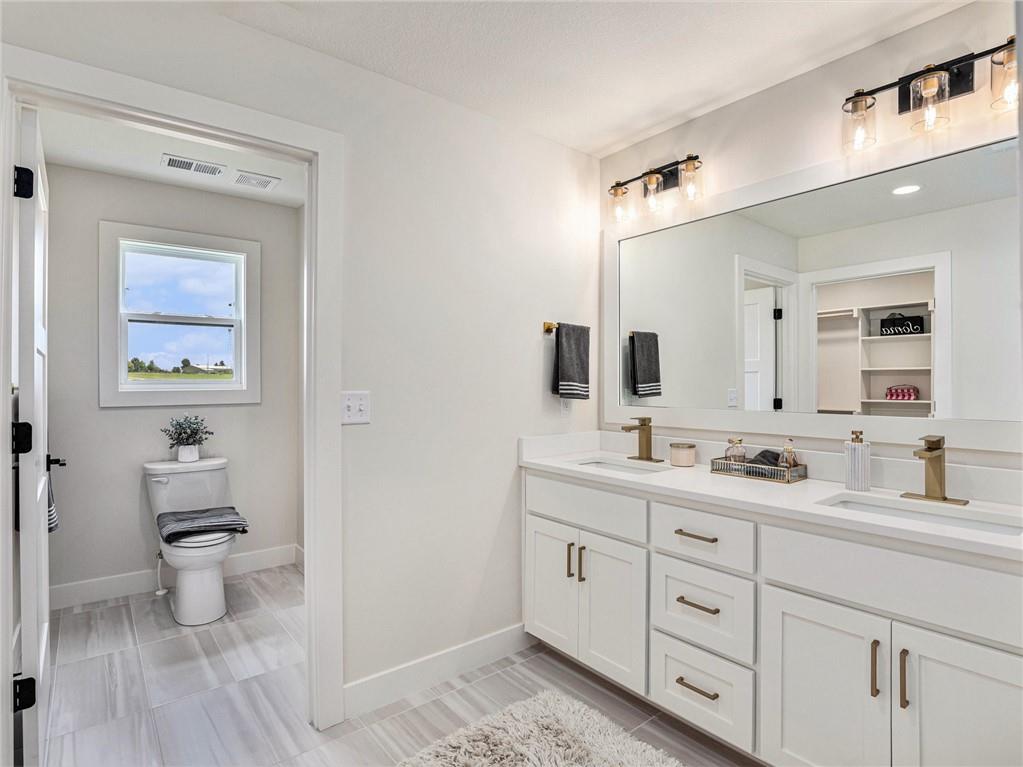 ***SPRING SPECIAL!***2-STORY MODEL HOME NOW FOR SALE*** The MADISON! Modern Farmhouse Design! Upgraded Features Include: 3-CAR GARAGE with EPOXY Floor FINISH ($8,600 Value!) Large Open Kitchen with ISLAND, QUARTZ Countertops, Soft Close Cabinets and Drawers! Large WALK-IN PANTRY, Built-In Spice Rack, Stainless Steel Appliance Package and Composite Sink! BREAKFAST Nook Opens to Covered and Extended PATIO! Beautiful HARDWOOD Floors Throughout First Floor and Second Story Hallway! Large GREAT Room with Stunning STONE Direct Vent Fireplace! OPEN RAIL to 2nd Story with Large PRIMARY Suite with Spacious Walk-In Closet, Hardwood Floors, X-Large Custom Tile Shower, Pivot Shower Door, Barn Door and QUARTZ Vanity Top! Large LAUNDRY Room with Tile Flooring and BUILT-IN Cabinet! Hall Bathroom offers Double Sink, Custom Tile Tub/Shower and Large Built-In LINEN Cabinet! FINISHED Basement with X-Large Rec-Room with Luxury Vinyl Plank Flooring, WET BAR with Quartz Top, Floating Shelves and 3rd Bathroom with Tile Shower ($45,000 Value)! Upgraded Lighting Package Throughout! SPRINKLER System and Upgraded LANDSCAPING Package ($12,500 Value)! Upgraded Black Window Package! High Efficiency HVAC with Humidifier! Square footage and room sizes are APPROXIMATE from Builder or Blueprint. Owner/Agent. Minutes From The Legends! Award Winning Blue Ribbon BASEHOR LINWOOD Schools!