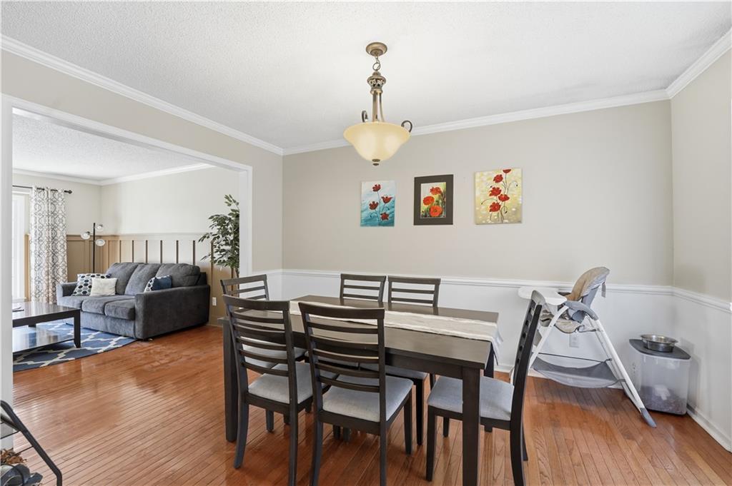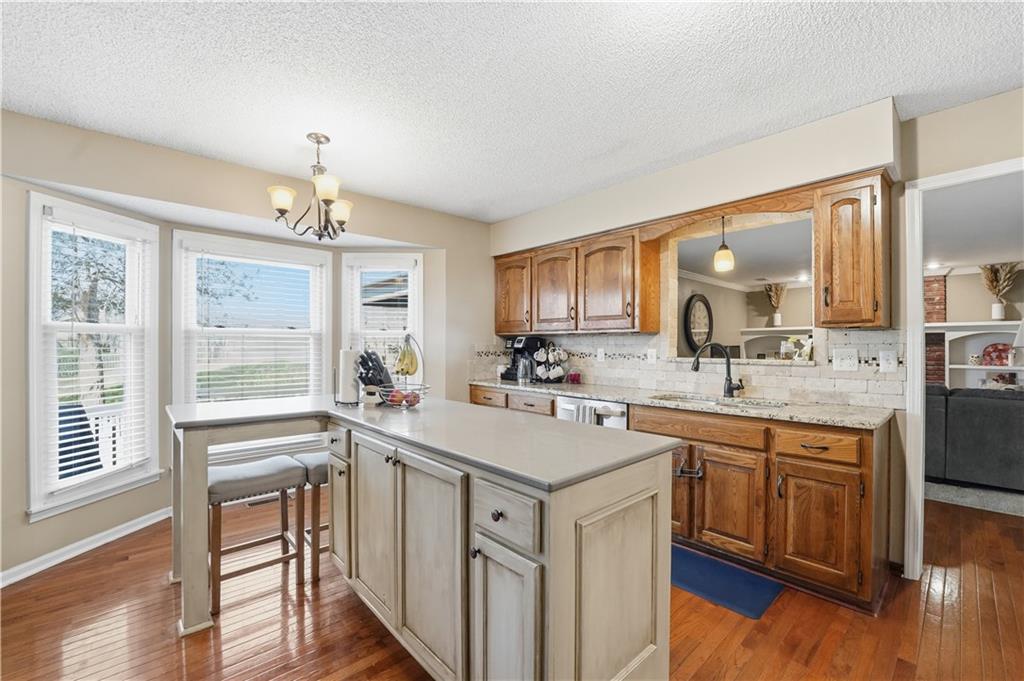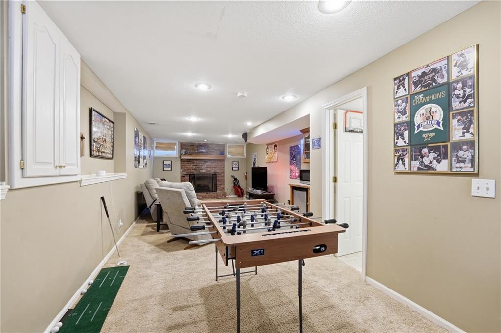 Ideally situated near Little Mill Creek South Park, great location! Gleaming wood floors run throughout the main level and continue upstairs into the hallway and bedrooms, creating a warm, cohesive feel. The main level offers flexibility and function, featuring a spacious living room with classic wainscoting—ideal as a sitting area or home office—alongside a formal dining room with direct access to the back deck. The kitchen is both stylish and practical, showcasing abundant cabinetry, granite and quartz countertops, stainless steel appliances, and a custom island with pullouts and seating. It opens seamlessly to the cozy great room, where a fireplace and built-in shelving create the perfect gathering space.Upstairs, you’ll find four generously sized bedrooms, a charming loft area, and two beautifully updated tiled bathrooms. The primary suite is a standout with its coffered ceiling, dual closets, and a refreshed en-suite bath featuring a tiled shower and floor and vanity with granite top. The finished walk-out basement expands your living space even further, offering the ultimate hangout zone with built-in shelving, a rec area with pool table, half bath, wet bar, and a media space with fireplace. Great opporunity.