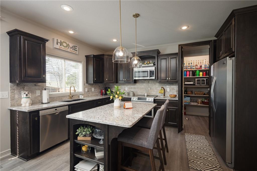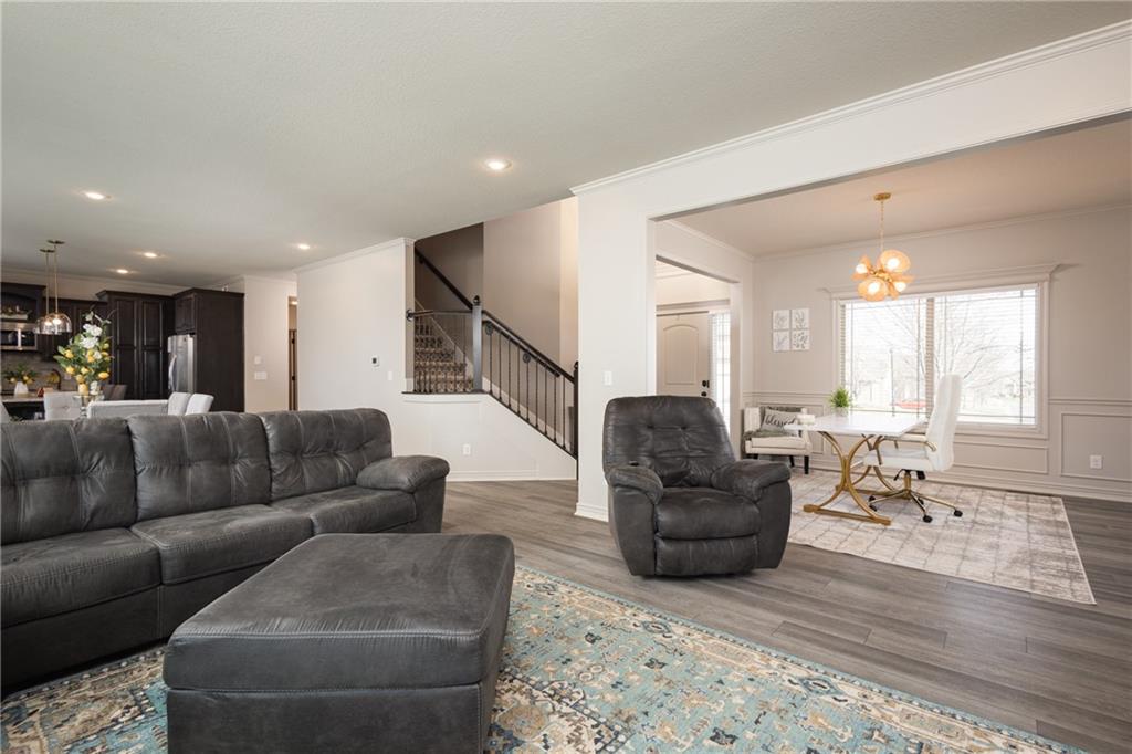 This spacious and beautifully appointed 2-story home offers 5 bedrooms, 3 full bathrooms, and 1 half bath, providing plenty of room for comfortable living and entertaining. The main level features an open and functional layout with granite countertops, a large walk-in pantry, and pre-wiring for surround sound—perfect for hosting or relaxing at home. A versatile flex space offers the option for a formal dining room or a home office. Upstairs, you’ll find the conveniently located laundry room along with generously sized bedrooms. The HVAC system is zoned to keep the upstairs just as comfortable as the main level all year long. The primary suite is a true retreat, featuring ample space, a walk-in closet, and a luxurious en-suite bath complete with a jetted tub. The finished basement expands your living space even further, offering endless possibilities along with abundant storage throughout the home. Step outside to enjoy the fenced backyard and patio—ideal for outdoor gatherings, kids, or pets. Car enthusiasts or those needing extra space will appreciate the 3-car garage. Located in a vibrant, family-friendly neighborhood filled with activity, residents enjoy access to incredible amenities including two pools, walking trails, and a scenic 30-acre stocked lake. Situated in the highly desirable Lee’s Summit School District, this home combines space, comfort, and community in one exceptional package.