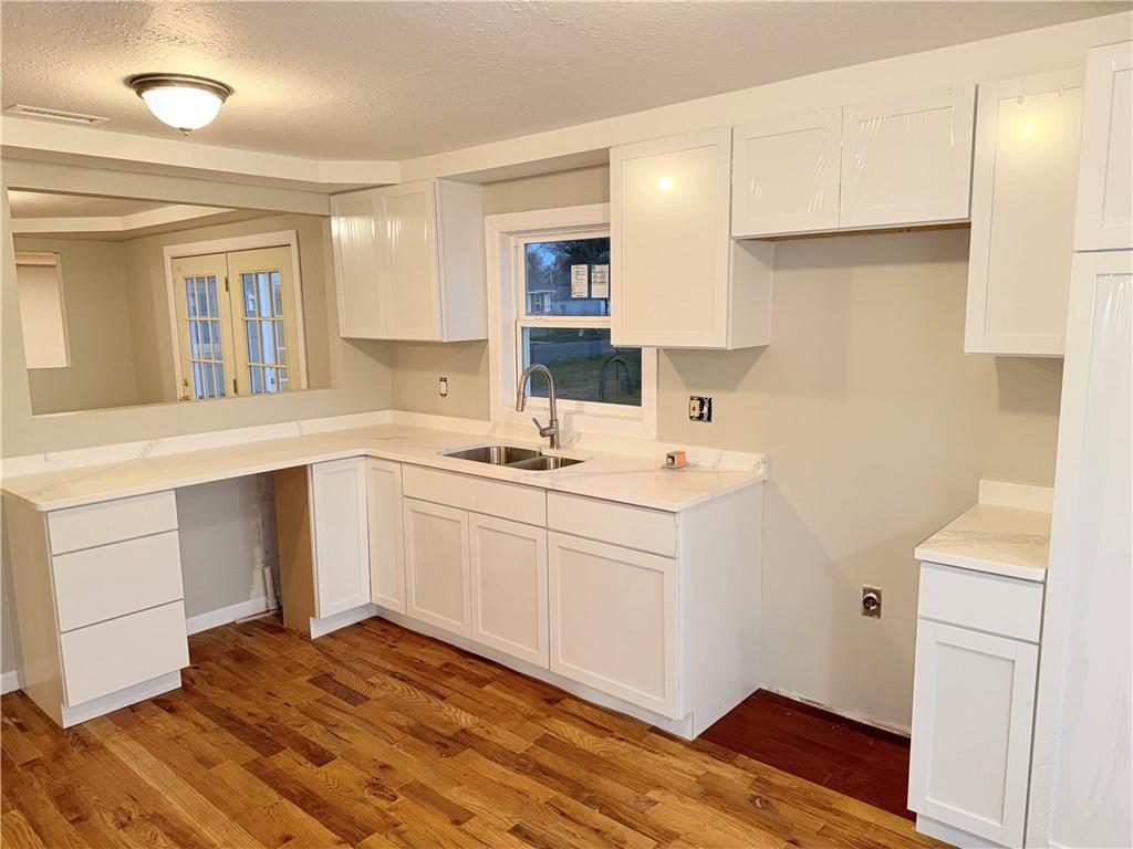 Welcome to this beautifully fully remodeled 3-bedroom, 1-bath home offering the perfect blend of modern updates and timeless character. From the moment you arrive, you’ll notice the inviting curb appeal, unique brick accents, and charming entryway. Inside, you’ll fall in love with the gorgeous hardwood floors, complemented by stylish finishes throughout. The completely brand new kitchen has been remodeled from top to bottom, featuring brand new cabinets, stunning quartz countertops, and a clean, modern design perfect for everyday living and entertaining. The brand new bathroom has been remodeled top to bottom, featuring a tub/shower combo and a new vanity with soft-close cabinetry, offering both comfort and modern appeal. Major mechanical updates include a brand new central electric cooling system and natural gas furnace, along with a brand new endless electric water heater, providing efficient, year-round comfort and on-demand hot water. The home also includes a brand new dishwasher, adding everyday convenience. This property stands out with a very strong foundation and solid construction, making it an exceptional investment as well as a beautiful place to call home. Situated on a large lot, there’s plenty of space to enjoy outdoor living and entertaining. The condition of this home makes it an excellent choice for a wide range of buyers. Be sure to explore Iola’s citywide Neighborhood Revitalization Plan, which may offer potential property tax rebates based on the home's improvements and increased value (buyer to verify eligibility).