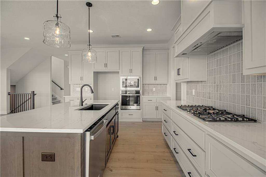 Move-in ready and beautifully designed, The Inglenook by Inspired Homes showcases a striking Craftsman-style exterior on a spacious, flat homesite—perfect for relaxing evenings or hosting BBQs on covered patio. Inside, you’ll find a thoughtfully designed layout with all the spaces you’ve been searching for. Just off the entry, a private home office with French glass doors and a walk-in closet offers both function and flexibility. The main floor features soaring 10-foot ceilings and oversized picture windows that fill the home with natural light. The kitchen is a true centerpiece, complete with high-end finishes including quartz countertops, a deluxe wood hood, built-in appliances with a gas cooktop, upgraded lighting, and under-cabinet illumination. An oversized walk-in pantry provides ample storage, and the kitchen flows seamlessly into the spacious great room, highlighted by custom built-ins, floating shelves, and a stunning stone fireplace. The breakfast area impresses with panoramic views and a custom X-beam ceiling detail. Car enthusiasts will appreciate the rare, oversized three-car garage—large enough to accommodate trucks or full-size SUVs with ease. Upstairs, generously sized bedrooms all include walk-in closets. The primary suite offers a luxurious bath and expansive closet, along with the convenience of second-floor laundry. The FINISHED BASEMENT adds even more living space, featuring a beautifully designed wet bar—perfect for entertaining. Located in the desirable Pryor Ridge community, residents enjoy exceptional amenities including a junior competition-sized pool, playground, basketball and pickleball courts, off-leash dog park, open green spaces, and scenic walking trails. All of this is just minutes from shopping, dining, groceries, entertainment, and easy highway access.