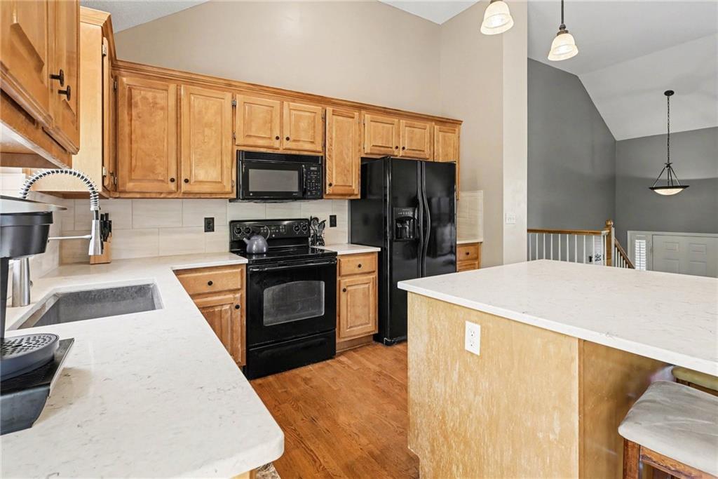 Beautiful split-entry home offering spacious living and thoughtful updates throughout. Enjoy wide hallways and an open, flowing layout enhanced by vaulted ceilings across the entire upper level, creating an airy and inviting feel. The living spaces are anchored by a striking two-sided fireplace that seamlessly connects the great room and kitchen. The kitchen features new countertops, complemented by fresh paint in select areas, giving the home a clean, updated look. The remodeled primary bathroom adds a touch of modern comfort and style. Downstairs, the garden-level basement is bright and open, providing additional flexible living space perfect for a family room, home office, or guest area. Step outside to a fenced backyard with plenty of room to enjoy, ideal for entertaining, pets, or play. Conveniently located with Ravenwood Elementary School within walking distance and just minutes from Raven Ridge Park, this home combines comfort, space, and an excellent location.