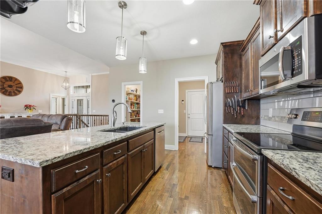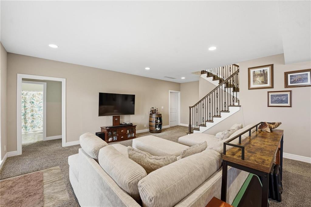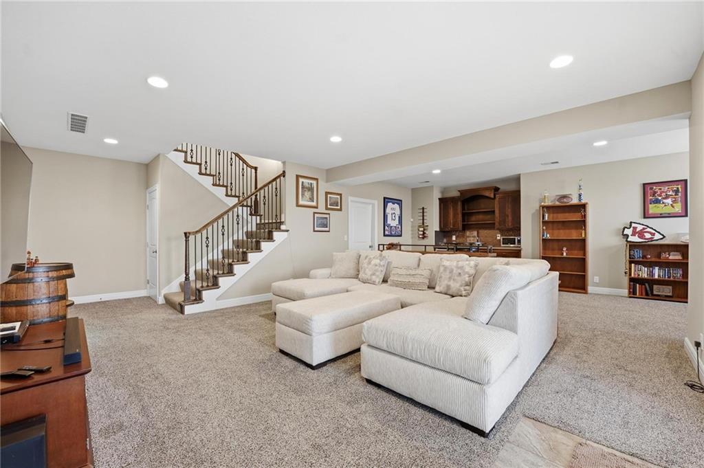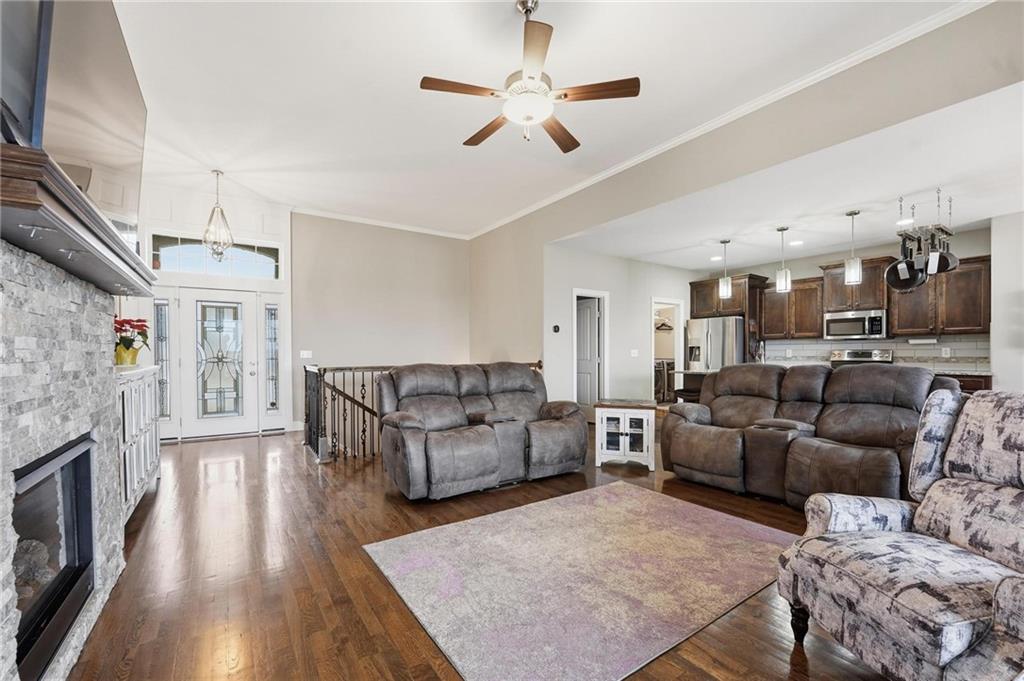 Welcome home to 909 SE Forest Ridge Court, ideally nestled on a quiet cul-de-sac in the highly sought-after Parkway Estates subdivision in Blue Springs. This beautifully maintained reverse 1.5-story home makes a lasting impression from the moment you step inside, featuring a fabulous open floor plan with gleaming wood floors and a plethora of natural light. The main level offers a spacious primary suite complete with a beautiful bathroom and a generous walk-in closet. You’ll also appreciate the dedicated home office, providing the perfect space for remote work or added flexibility. The kitchen flows seamlessly into the expansive living and dining areas—ideal for entertaining guests or enjoying cozy nights at home. The finished lower level is just as inviting, featuring two generously sized bedrooms, a full bathroom, and a large recreation area with a wet bar—perfect for hosting or relaxing. With abundant natural light streaming through the windows, this space feels comfortable and ready to accommodate your everyday needs. Step outside to enjoy the spacious deck and backyard, offering plenty of room to relax or entertain. This move-in ready home is a must-see—schedule your showing today and experience everything this home has to offer!