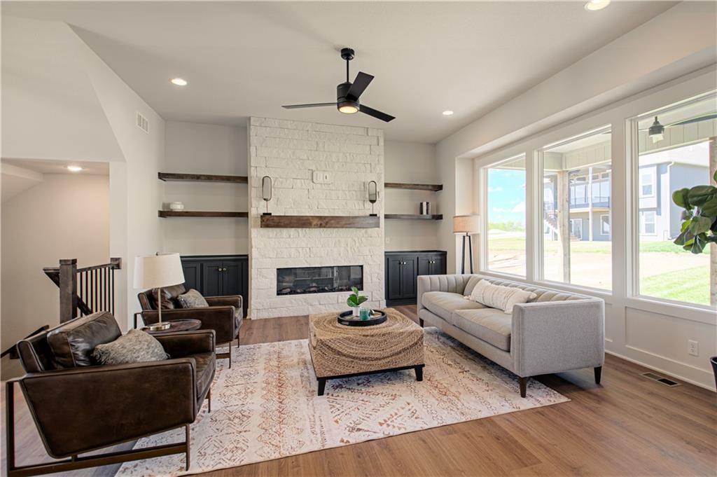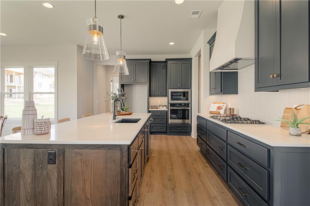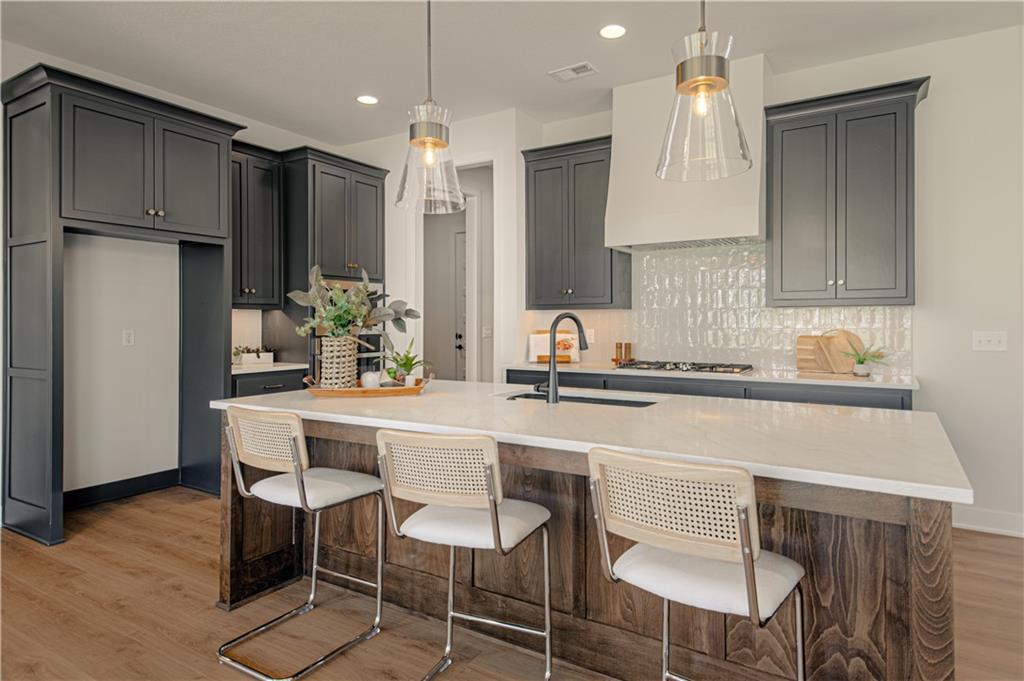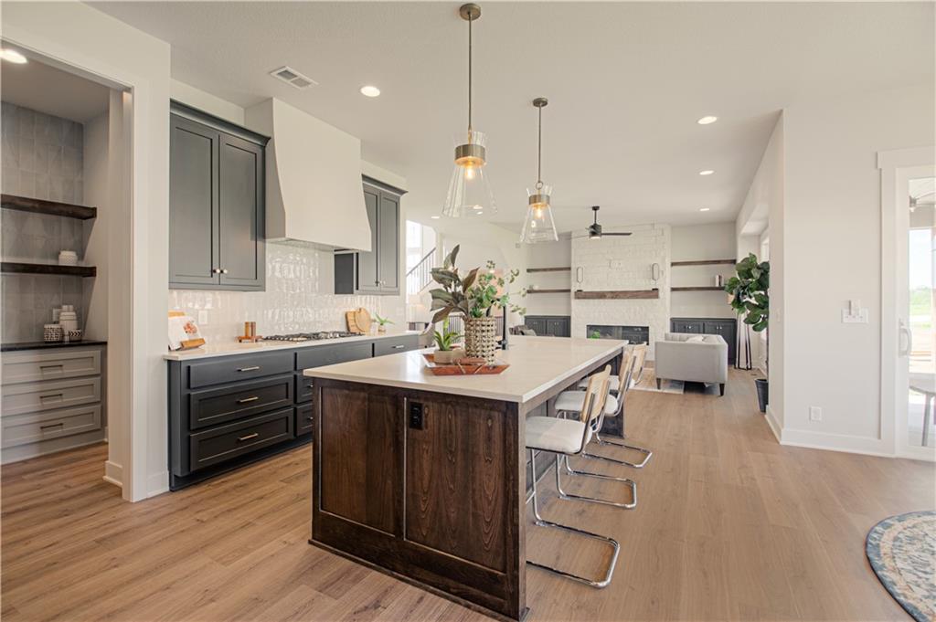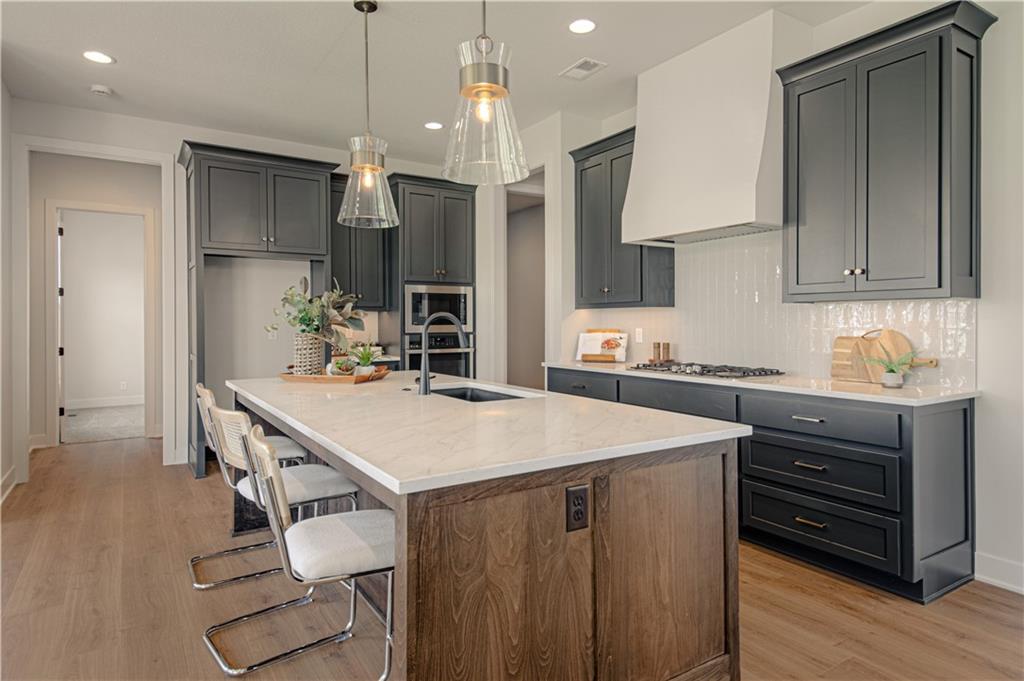 Step into the Inspired Homes 2-story Delano and experience a design that immediately stands out. A dramatic grand entry with 18-foot ceilings welcomes you in and flows seamlessly into the open-concept great room and kitchen. The main living area offers plenty of space to relax and entertain, featuring a striking floor-to-ceiling fireplace with built-in cabinetry, a generous dining area surrounded by wall-to-wall windows, and a thoughtfully designed kitchen. You’ll love the oversized walk-in pantry, upgraded quartz countertops, stylish tile backsplash, soft-close custom cabinetry, and modern lighting throughout. On the main level, a private bedroom and full bath provide the perfect setup for guests, a home office, or a playroom. Near the front entry, a convenient pocket office with a window brings in natural light—ideal for working from home. Upstairs, you’ll find three spacious secondary bedrooms, each with walk-in closets and built-ins, including one with its own private bath. The primary suite is tucked away at the back of the hall and features a luxurious en-suite bath with a soaking tub, dual vanities, and a large dual-head shower. The adjoining walk-in closet is truly exceptional, with two separate wings and a hidden bonus room—perfect for a private office, workout space, or creative retreat. Outside, enjoy a large, flat backyard and an oversized covered patio—perfect for entertaining or relaxing. The expanded 3-car garage offers extra depth and is complemented by a spacious driveway. The full unfinished basement includes plumbing stubs for a future bathroom and wet bar, for endless possibilities to customize the space. Located in the desirable Pryor Ridge community, residents enjoy exceptional amenities including a junior competition-sized pool, playground, basketball and pickleball courts, off-leash dog park, open green spaces, and scenic walking trails. All of this is just minutes from shopping, dining, groceries, entertainment, and easy highway access.
