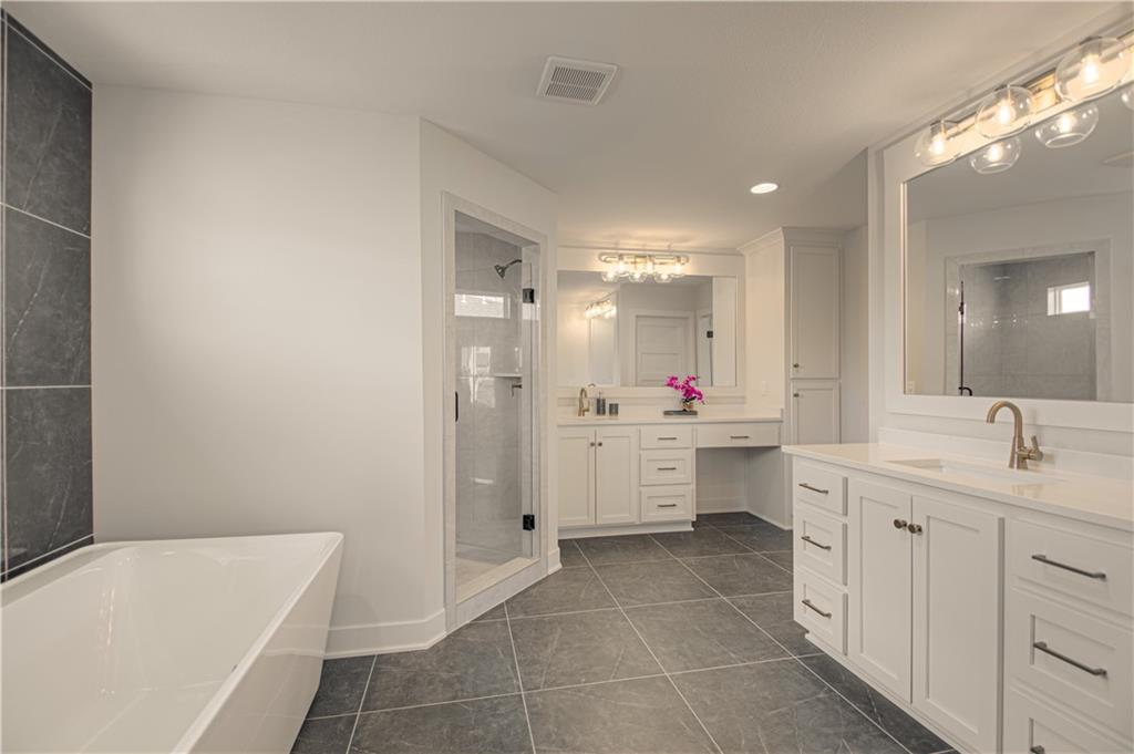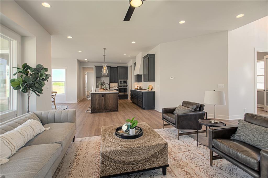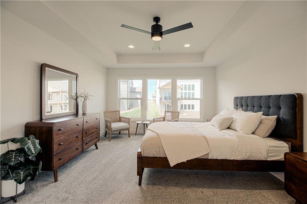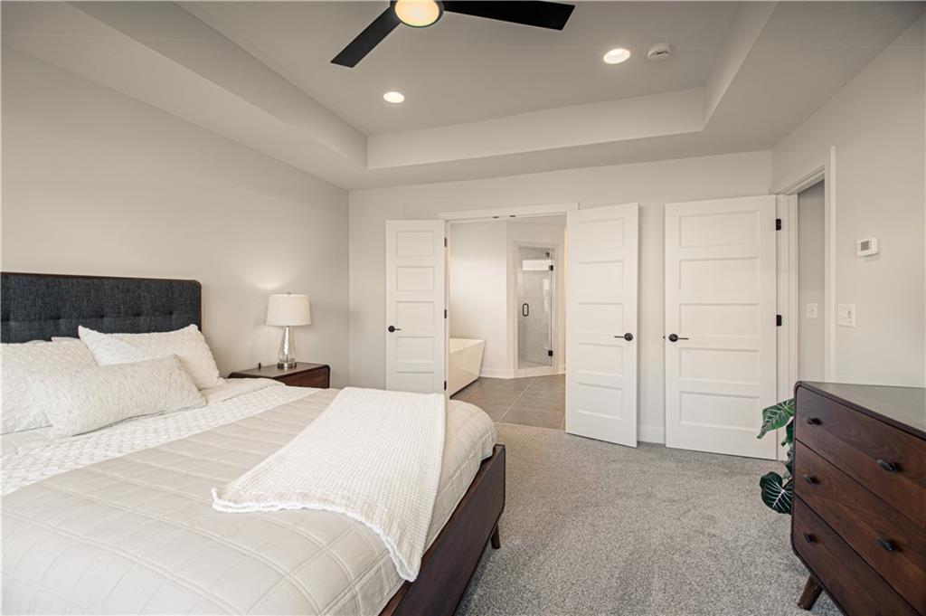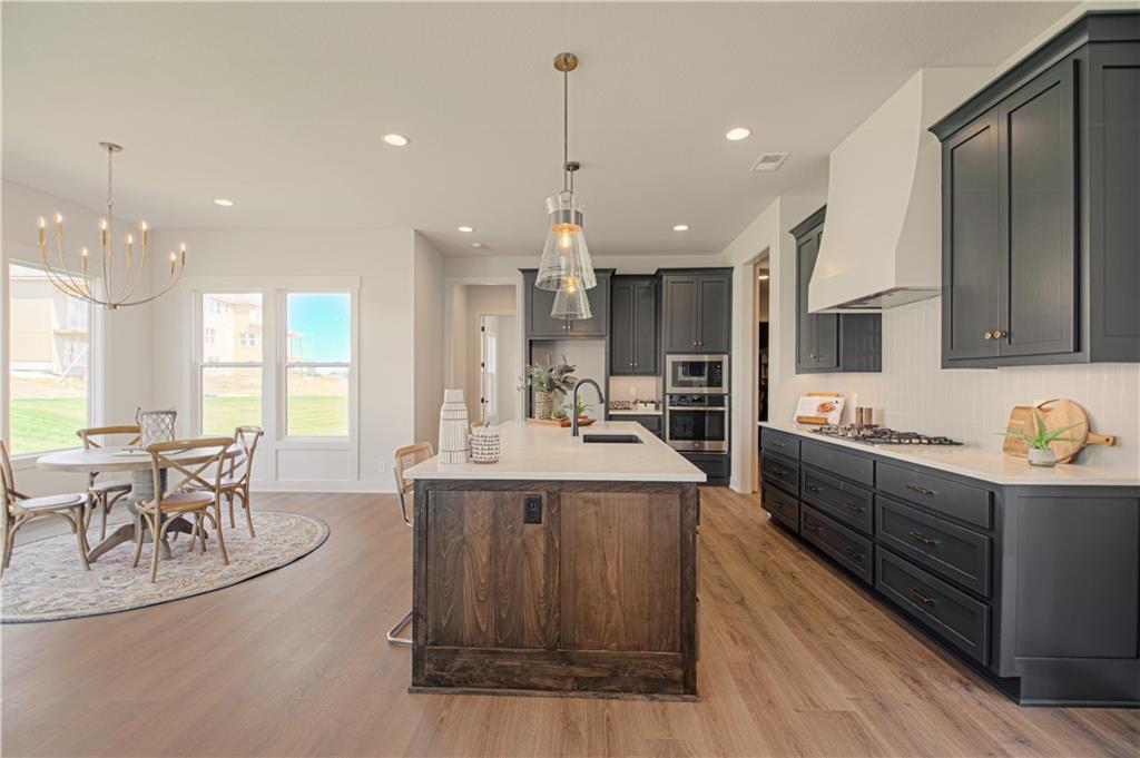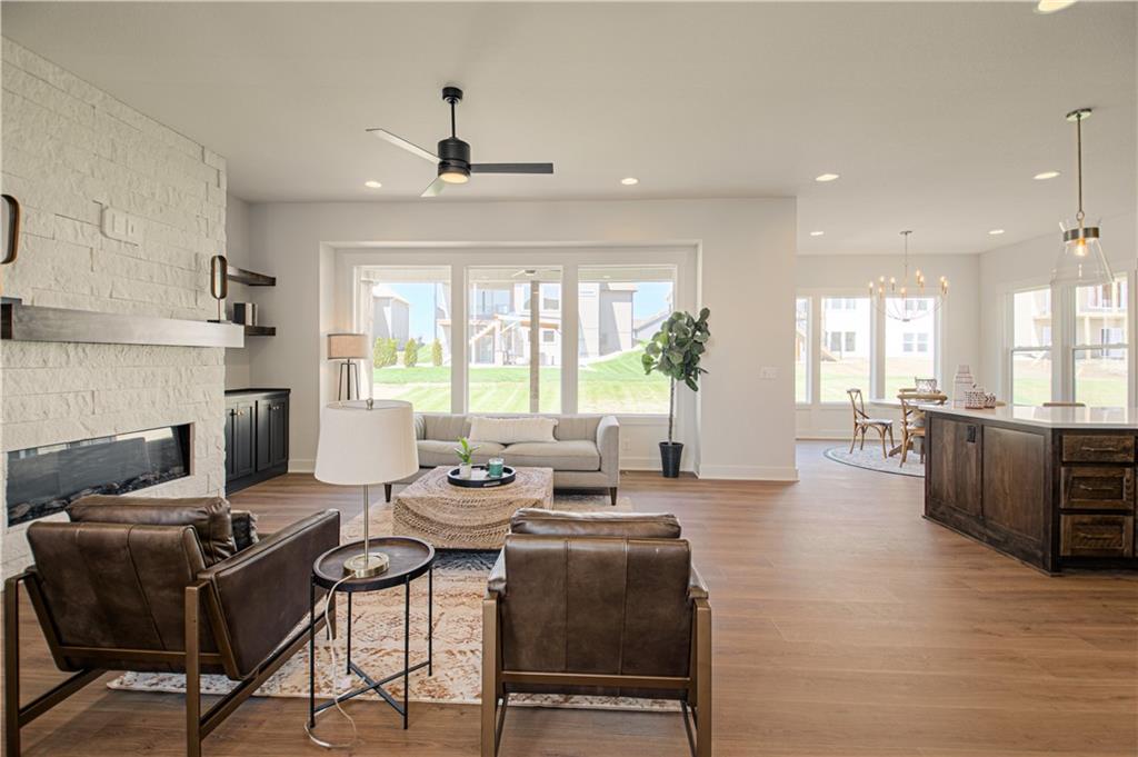 Step into the Inspired Homes 2-story Delano and experience a design that immediately stands out. A dramatic grand entry with 18-foot ceilings welcomes you in and flows seamlessly into the open-concept great room and kitchen. The main living area offers plenty of space to relax and entertain, featuring a striking floor-to-ceiling fireplace with built-in cabinetry, a generous dining area surrounded by wall-to-wall windows, and a thoughtfully designed kitchen. You’ll love the oversized walk-in pantry, upgraded quartz countertops, stylish tile backsplash, soft-close custom cabinetry, and modern lighting throughout. On the main level, a private bedroom and full bath provide the perfect setup for guests, a home office, or a playroom. Near the front entry, a convenient pocket office with a window brings in natural light—ideal for working from home. Upstairs, you’ll find three spacious secondary bedrooms, each with walk-in closets and built-ins, including one with its own private bath. The primary suite is tucked away at the back of the hall and features a luxurious en-suite bath with a soaking tub, dual vanities, and a large dual-head shower. The adjoining walk-in closet is truly exceptional, with two separate wings and a hidden bonus room—perfect for a private office, workout space, or creative retreat. Outside, enjoy a large, flat backyard and an oversized covered patio—perfect for entertaining or relaxing. The expanded 3-car garage offers extra depth and is complemented by a spacious driveway. The full unfinished basement includes plumbing stubs for a future bathroom and wet bar, for endless possibilities to customize the space. Located in the desirable Pryor Ridge community, residents enjoy exceptional amenities including a junior competition-sized pool, playground, basketball and pickleball courts, off-leash dog park, open green spaces, and scenic walking trails. All of this is just minutes from shopping, dining, groceries, entertainment, and easy highway access.