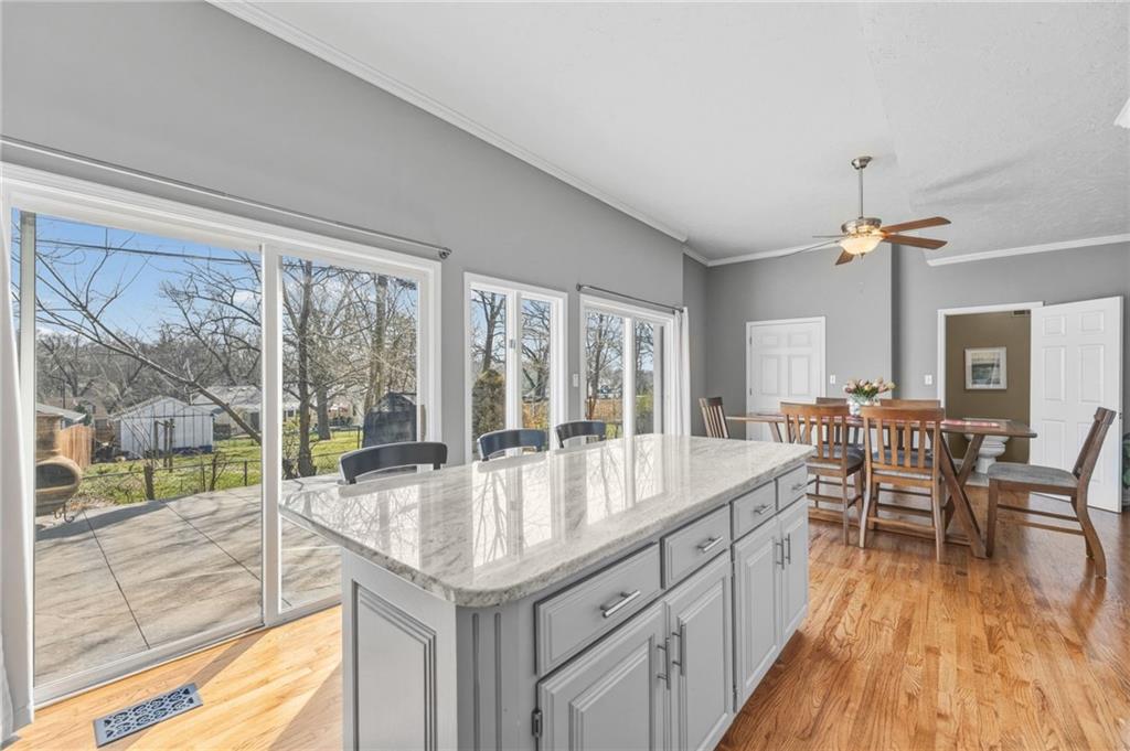 ONE OF THE LARGEST LOTS IN ROELAND PARK - 12,500 SF (.29 AC) VS 7,500 SF ***PLUS*** THIS UNIQUE SHAPED LOT GIVES YOU MULTIPLE USABLE ZONES FOR THINGS SUCH AS GARDENING, PLAY AREA, ENTERTAINING SPACE! Tucked at the end of a quiet cul-de-sac, this spacious Roeland Park home offers room to live, entertain, and grow. Step inside to discover over 3,200 square feet of functional living space, highlighted by a massive kitchen with stainless steel appliances, gas range, and an oversized island that naturally becomes the center of the home. Multiple living and dining areas provide flexibility for gatherings both large and small. Upstairs, the master suite feels like a private retreat—complete with its own deck, a huge walk-in closet, and a beautifully updated bathroom with double vanities and a walk-in shower. Generously sized secondary bedrooms offer comfort and versatility for any lifestyle. From the oversized garage with tall ceilings to recent updates like newer roof and windows, this home combines space, practicality, and value. All just minutes from shopping, restaurants, and easy highway access. Homes with this much space in this location don’t come around often—A LOT OF HOUSE FOR THE $$$.