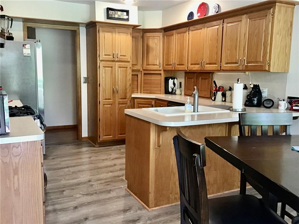 MOVE IN READY!! This well maintained ranch home includes; Main Level; 3 bedrooms, 2 bathrooms, living room w/fireplace, formal dining room, sunroom, beautiful kitchen w/tons of cabinets, pantry, eat-in area. All new interior paint, new main level carpet, all custom cabinetry throughout the home! Walk-out and enjoy your morning coffee or relax on the new patio! Great landscaping options with a backyard that includes French Drains. LL has complete mother-in-law quarters, living room, dining room, kitchen, bedroom NC, bathroom, and has endless possibilities in the large bonus room; Art Studio, Workroom, Office, or 5th NC bedroom whatever you may choose or need! Tons of storage & storm shelter area. Quite neighborhood just blocks from KU campus, shopping & restaurants. All measurements are estimated & should be confirmed by buyer.