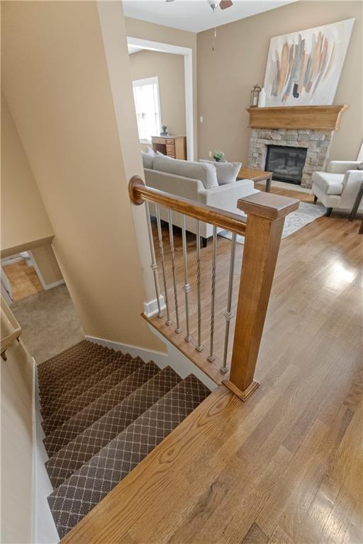 Super clean and ready for a quick occupancy, this coveted Tom French Lexington plan is a south side end unit w/ first floor primary suite & laundry room*sunny living room w stone fireplace opens to kitchen w/breakfast area, granite counters, wood floors & walk-in pantry*kitchen offers direct access to screened porch which backs east and makes for perfect sunshine mornings and shaded afternoons* LL w 2 bedrooms, full bath, media/bonus room and plenty of storage. All baths & laundry w tile floors. Showers have tile surrounds. Room sizes, sq. footage, HOA fees and taxes may be approximate, please verify.