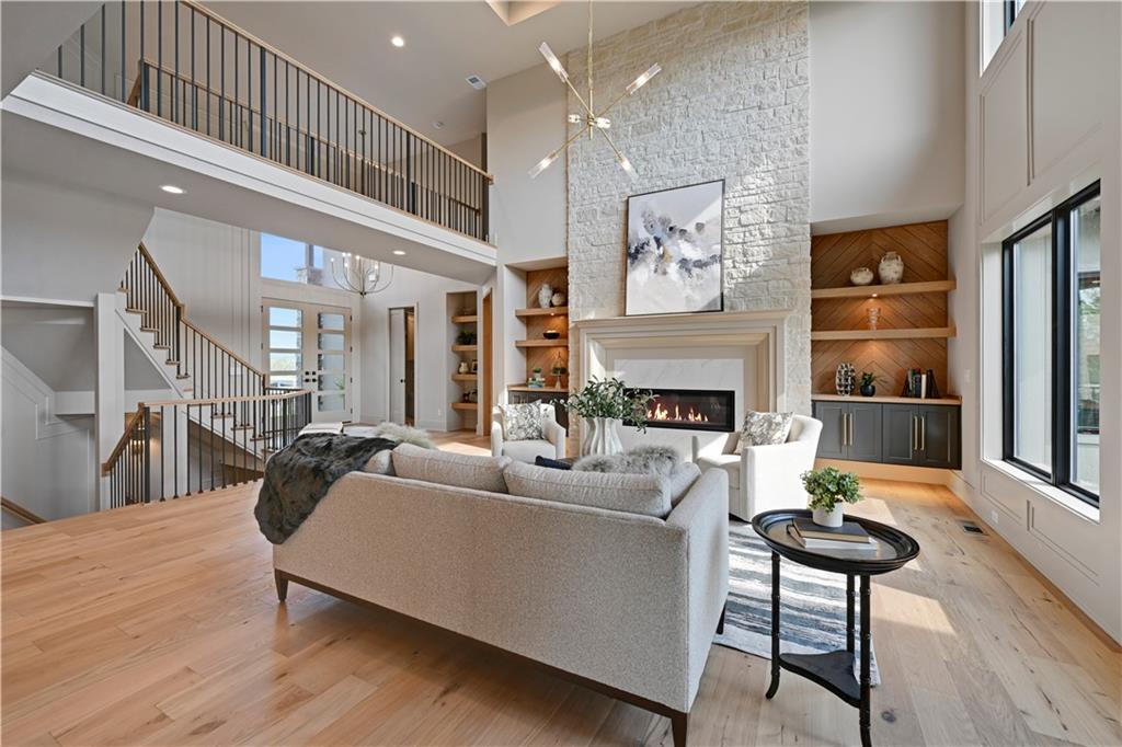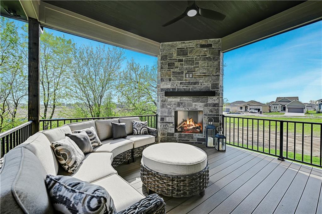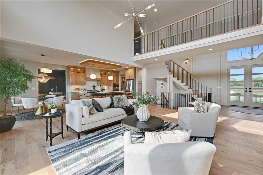 MODEL HOME NOT FOR SALE. The "Layla II" 1.5 Story by Walker Custom Homes is here at Heritage Ranch! The incredible contemporary front elevation with luxurious stone, stucco and custom accents you are sure to feel the lavish this home brings as soon as you arrive! As you enter into the soaring entry and winding staircase to the upper level, the Great room has ample natural light, fireplace stone to the ceiling, beams, opens up to the kitchen and dining room. Covered Composite Deck with fireplace. Large office behind the kitchen. Every bedroom/office has its own En-Suite bathroom. Butlers pantry and additional pantry. Mud Hall with boot bench with locker cabinets next to the half bath. Primary En-Suite behind the Great Room. Spa-primary bathroom with stand-alone tub in the wet-room, double vanity and premium lighting and tile, next to the walk-in closet, connecting to the main level laundry! Up the grand staircase is 2 more bedrooms both en-suite and a Loft. Basement is finished with another bedroom en-suite, wet bar, rec room, ample wine storage with glass door and media room. All in the coveted Heritage Ranch, A Lambie-Rieke Community, with Amenities Galore such as state-of-the-art pool, clubhouse, trails, pickleball. play area, half-court basketball, Putting Green & ponds and so much more coming soon! This community provides a wonderful lifestyle and right next to the 1,238 Acre Heritage Park with Dog Park, Sports Parks, Golf, Lake, Trails and so much more! Contact Onsite Agents for Estimated Completion of homes on site, and design selections. Our Welcome Center Office will be open soon. We are available 7 days a week for showings of Models & Specs. Renderings &/or images may show features and sq ft that are subject to change. Welcome Home to Heritage Ranch - one of the last NEW Home Communities in Johnson County! ESTIMATED COMPLETION APRIL 2026. LOCATED ON LOT 100.