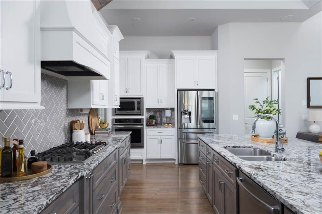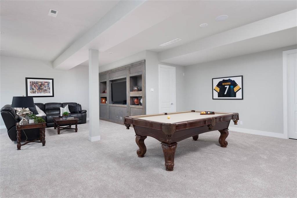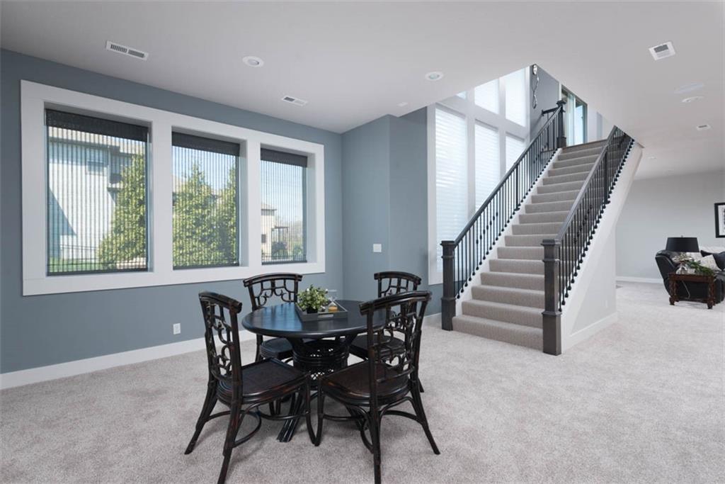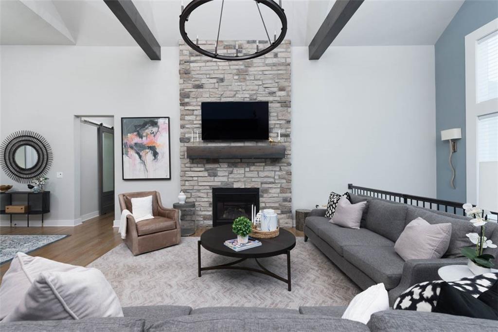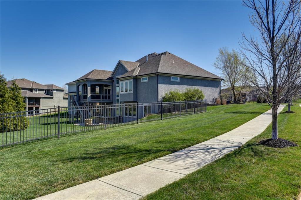Positioned on a walkout corner lot in the sought-after Colton community, this custom Brookridge II by Don Julian Homes offers a refined take on reverse 1.5-story living with impeccable upgrades throughout. From the moment you step inside, soaring ceilings and expansive 3-floor window wall create a sense of openness, while rich architectural details bring warmth and character to the main living spaces. At the center of the home, the kitchen is both breathtaking and functional, anchored by an oversized island, abundant custom cabinetry, stunning backsplash and countertops, and a walk-in pantry designed for effortless organization. The adjoining dining area flows seamlessly to the covered deck, where a fireplace and elevated views create an inviting extension of the home, ideal for both quiet evenings and hosting with ease. The main-level primary suite is designed as a true retreat, featuring a spa-like bath with an oversized shower and rain head, dual vanities, and a generous walk-in closet that connects directly to the laundry room for added convenience. A secondary bedroom AND dedicated office or flex space complete the main floor, offering versatility without sacrificing comfort. The walkout lower level is equally impressive, with 10-foot ceilings that enhance the sense of space. A large recreation area, media space, and full bar create an ideal setting for entertaining, while additional bedrooms and baths provide privacy for guests. Outdoors, the experience continues with a spacious patio, firepit area, built-in grill, and a wide stretch of green space that feels both open and private, an ideal backdrop for everyday living and memorable gatherings. Garage features epoxy floors and custom cabinets! Every element of this home has been carefully curated to offer a balance of elevated design and effortless livability. A fantastic neighborhood just minutes away from dining, shopping, schools, highways, and entertainment, this stunning custom home has it all!