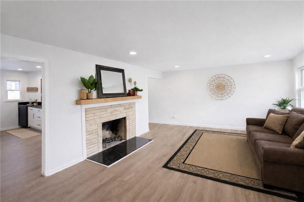 Living room featuring light wood-style floors and recessed lighting