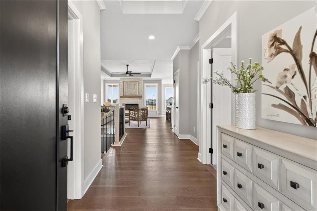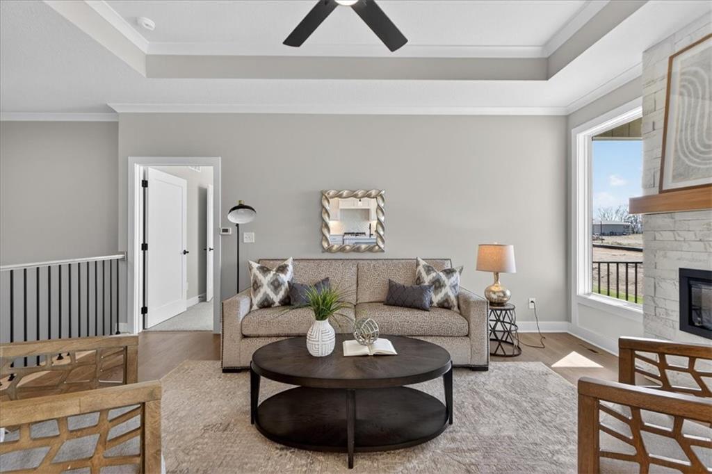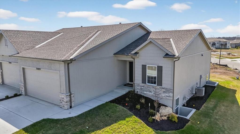 NEW MODEL HOME - NOT FOR SALE. Welcome to the Lakewood by Lambie Homes, a beautifully designed reverse 1.5-story floor plan located in the maintenance-provided Mize Hill community in Lenexa. This model showcases mid-level interior finishes and thoughtful design throughout, offering 4 bedrooms, 3 bathrooms, and a functional layout ideal for everyday living and entertaining.The main level features an open-concept design with a spacious great room, highlighted by a floor-to-ceiling fireplace and abundant natural light. The kitchen includes a wood hood vent, quartz countertops, walk-in pantry, and a large center island, seamlessly connecting to the dining area and covered deck, perfect for indoor-outdoor living.This home is currently serving as the Mize Hill model home and is not available for purchase. It is available to tour to experience the Lakewood floor plan, available finishes, and overall lifestyle offered within the community. Located near Cedar Station Park, Mize Lake, and with convenient access to K-10 and Prairie Star Parkway, Mize Hill offers low-maintenance living with planned amenities including walking trails and a future community pool. Professional photos coming 04/01/2026
