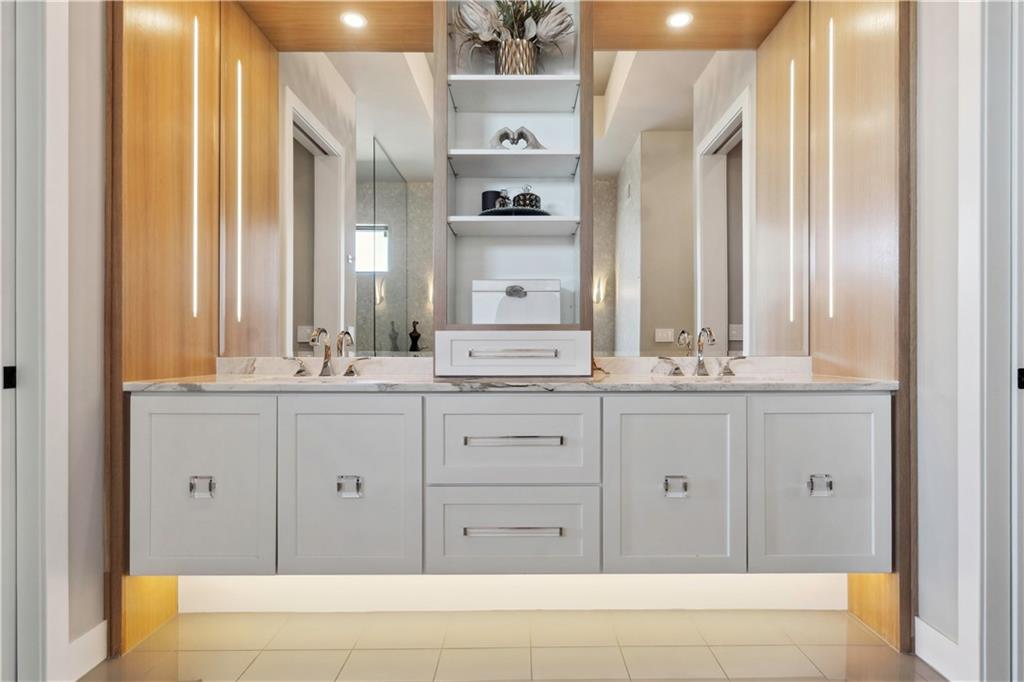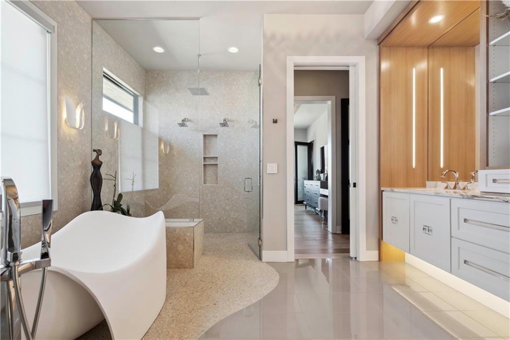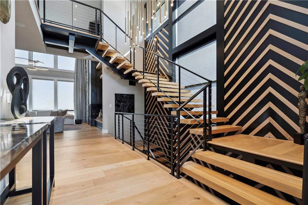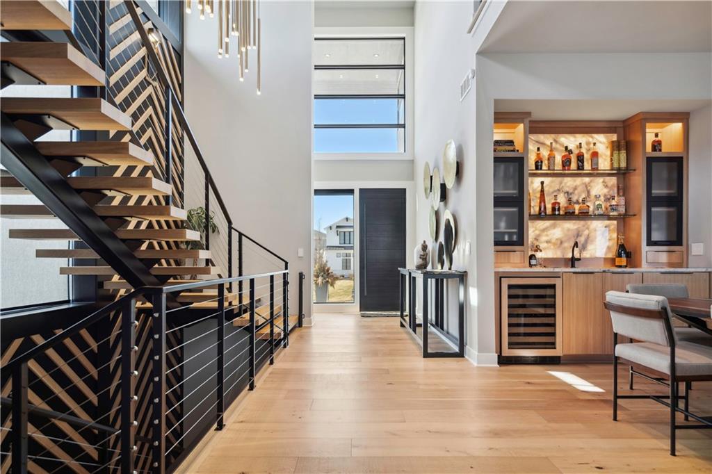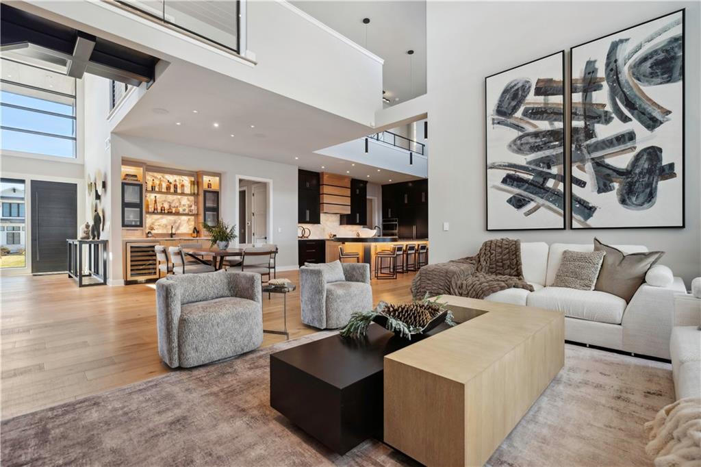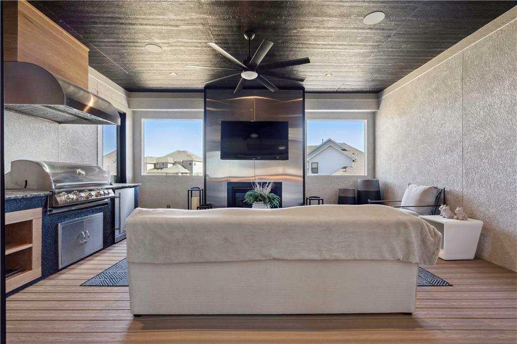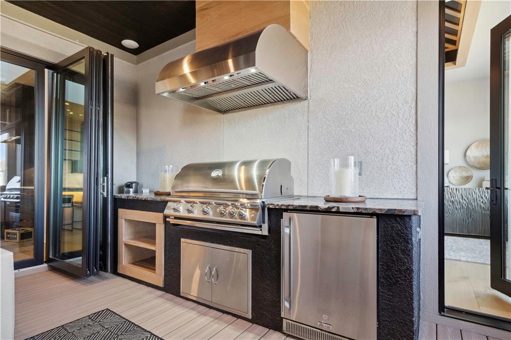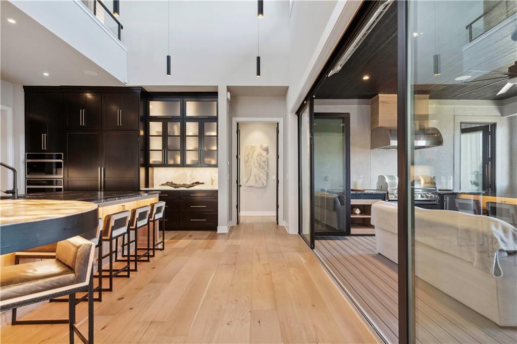 This one-of-a-kind Don Julian home mixes true modern esthetics with the comfort of everyday living. Thoughtfully designed throughout, from the custom 3-story floating staircase to the luxurious backlit quartzite stone, this home has the “Wow factor” you’ve been looking for! The two-story great room features floor-to-ceiling windows and a custom rolled metal fireplace, complete with built-ins and floating shelves. The stunning main level bar showcases European style cabinet doors and backlit stone. The spacious main kitchen boasts granite countertops, a paneled refrigerator, custom backlit cabinetry, and an induction cooktop. The secondary kitchen offers custom cabinetry with built-in storage, wine refrigerator, bar, oven, ice maker, dishwasher, and refrigerator. The primary bedroom and luxurious bathroom suite feature a freestanding tub, pebble stone shower floor, custom cabinetry, and quartz countertops. Panoramic doors extend to the private outdoor lanai, an ideal space for entertaining in all seasons, complete with a built-in grill, fireplace, and refrigerator. The main level also includes an office, spacious pantry, laundry room, and a beautifully designed mudroom. Off the loft upstairs, you’ll find each secondary bedroom features a private bathroom, crafted with meticulous attention to detail. The expansive walkout lower level offers ample space for additional finishing if desired. The owner has made extensive upgrades, including custom automatic blinds, luxurious custom closet design in the primary suite, and durable epoxy garage floors. Additional enhancements include an exterior door from the garage, custom garage cabinetry and mini split HVAC, fencing, and professional landscaping. The newly added outdoor patio space is perfect for entertaining, complete with a bar and built-in kitchen, complete with a pizza oven, cooktop and refrigerator! Plus, the home is equipped with whole-home automation for ultimate convenience and modern living.
