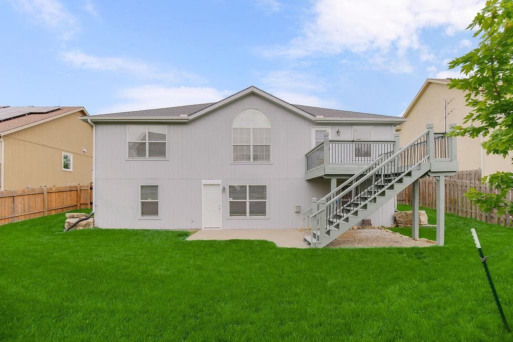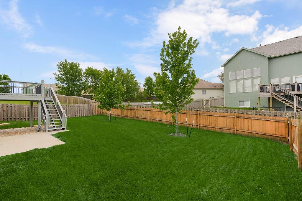 This well-maintained ranch in the Lansing School District offers main-level living just minutes from Fort Leavenworth. The living room features vaulted ceilings and wood beams, and the kitchen/dining room impresses with wood floors, granite countertops, a center island, large walk-in pantry, and abundant cabinetry. The main level also includes a master suite with walk-in closet and en-suite bath, a second bedroom, full bath, and laundry. Downstairs offers two additional bedrooms, a full bath, a large family room with fireplace, a wet bar w/new flooring, and generous storage. Enjoy outdoor living on the front porch or step out back to a deck and patio enclosed by a privacy fence — your own private retreat. Major updates give you total confidence: new roof (2024), fresh exterior paint (2025), new interior paint and carpet (2026), updated deck (2026), AC (2023), hot water heater (2022), and HVAC (2021) — plus granite countertops in all three bathrooms, updated interior and exterior lighting, and more. This home has been lovingly cared for and checks every box. NO HOA!