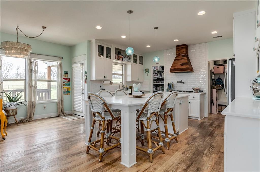 You will know you are home from the moment you pull up and see the gingerbread features on the front including shake shingles and a huge flower box and porch for sitting. Walk inside and you will be blown away by the open floor plan, gorgeous natural light and breathtaking view of the large lot and open field behind. The half acre lot features two large playgrounds, a trampoline, a large deck and patio and a huge garden for all your homesteading needs. Back inside this home on the main level you will find a cozy home office, bar and dining room and an expansive kitchen island sure to make any home cook or entertainer happy.
