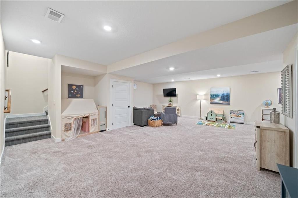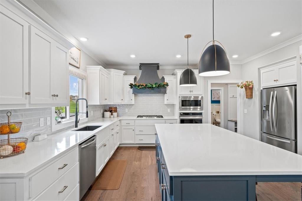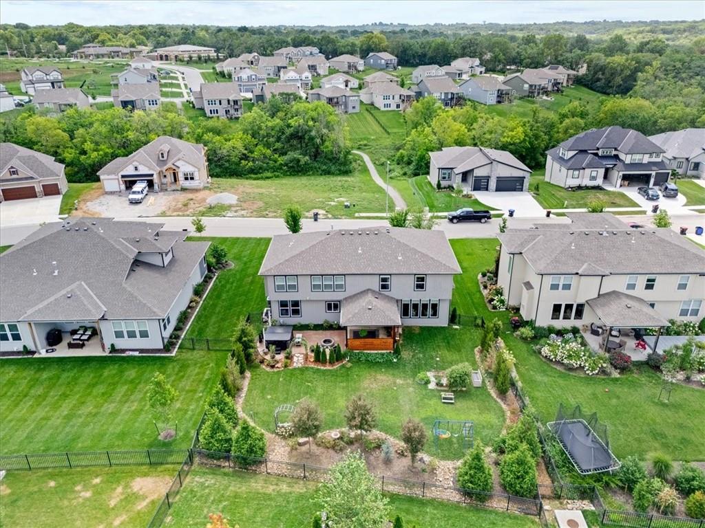 Welcome Home! WHAT A DEAL! This home was built brand new a few years ago for $775k! Seller has put in over $80k of improvements AFTER moving in!! Move right in instead of waiting 9 months to build! This 2 story home is better than new! Located in the coveted Reserve at Woodside Ridge, it has everything you need. 6 bedrooms 5 full bathrooms! Over 4100 sq ft of high end finishes with a mix of classic and modern. Large gourmet kitchen has a huge island, built in gas cooktop and an oversized walk in panty. Guest room or flex room on main floor makes a perfect home office, play room, or Mother In Law suite including a full bathroom. Mudroom off garage is perfect place to drop the kid's bookbags. Huge master suite upstairs has an extra sitting room with a private fireplace. Spa like master bathroom has his and hers vanities and his and hers walk in closets! Large Laundry room with prep station and built ins is upstairs by the master bedroom. Finished basement offers a large living room, a full bathroom and a 6th conforming bedroom! 4 bedrooms upstairs, one bedroom on main floor, and one in basement. Lots of fun trim accent walls sprinkled throughout the home. Outside has beautiful professional landscaping and a private covered porch, stamped concrete patio and firepit. Seller has invested over $80,000 of upgrades in the last 2 years. The Reserve at Woodside Ridge offers a convenient location to highway access, shopping centers, and the Rock Island Trail. So many amenities! Club house, pool with slide, pickleball court, and a playground area! HOA dues include trash, recycling, and paved walking trails! The walking trails are directly across the street from this home for easy access. Top rated Lee's Summit schools!
