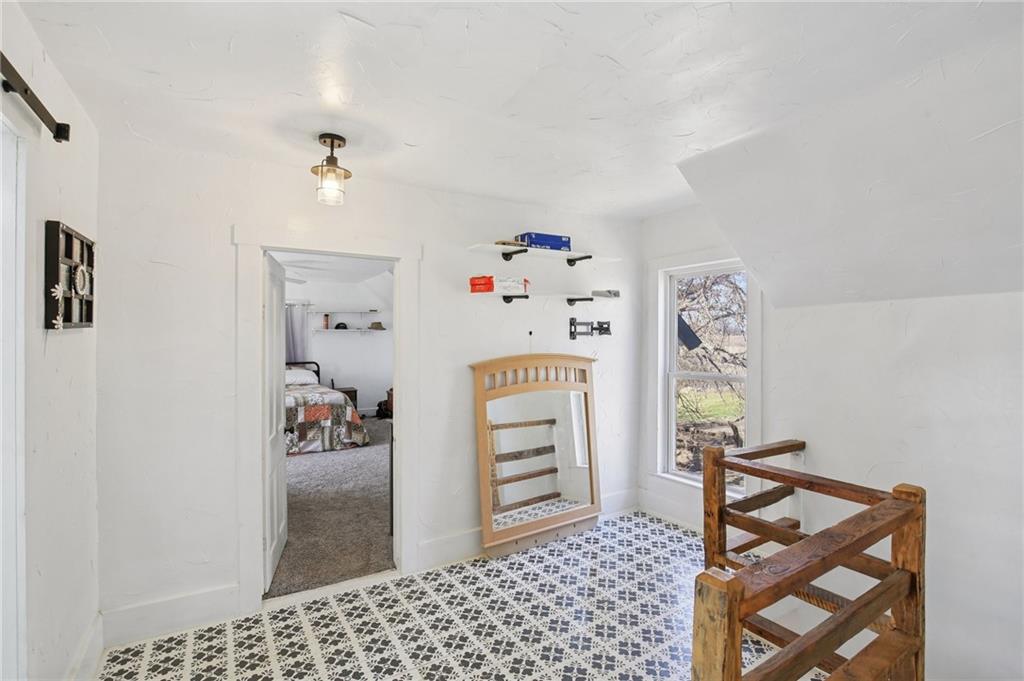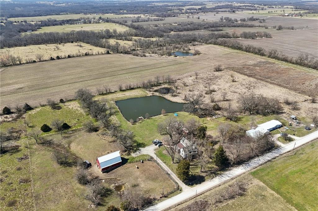 This stunning 1870 farmhouse has been meticulously renovated from top to bottom in 2023, preserving its rich historic character while delivering modern comfort and exceptional quality throughout. All-new electrical system throughout. Plumbing fully updated with modern PEX piping. Added insulation everywhere for outstanding energy efficiency. Roof replaced just 8 years ago. HVAC system (propane heat + electric central air) installed only 5 years ago. All new finishes, fixtures, and thoughtful updates while preserving the home’s timeless charm. The heart of the home is the extra-special country kitchen, beautifully renovated with warm wood cabinetry, generous counter space, and a large walk-in pantry that offers abundant storage. It’s the perfect gathering spot for family meals, holiday cooking, or casual entertaining—combining farmhouse charm with practical, modern functionality.This fully updated home features four generous bedrooms and three full bathrooms across 2,484 square feet of comfortable living space. Incredible Barn & Outbuildings. The excellent-condition barn features a full basement and offers versatile space for workshops, events, storage, or additional living areas. It has been extensively renovated to provide for animals. Property has been fenced for horses. A second unique outbuilding provides even more utility. Enjoy the beautiful stocked pond, covered porch on a peaceful 6.4-acre setting. Fiber optic internet and Shawnee Mound school district (multiple high school options after 8th grade) Quick! Take a Look at this fully updated home with high-quality workmanship and requiring no major projects. Seller has been transferred after completeing many projects to make this house their forever home. Buyer to verify all measurements and claims.