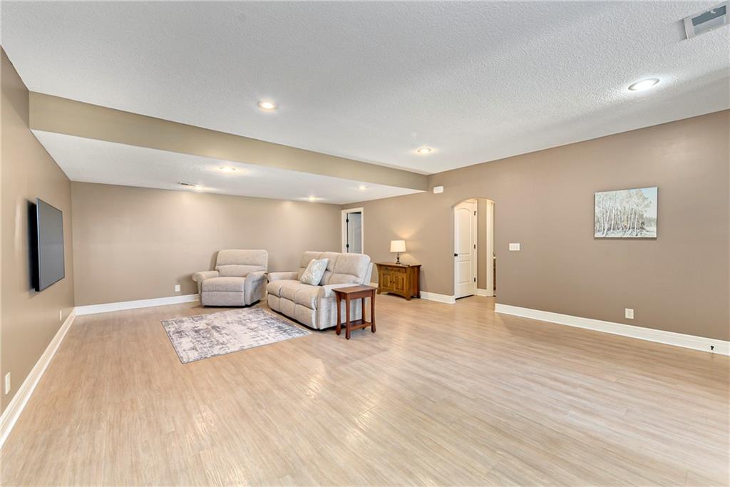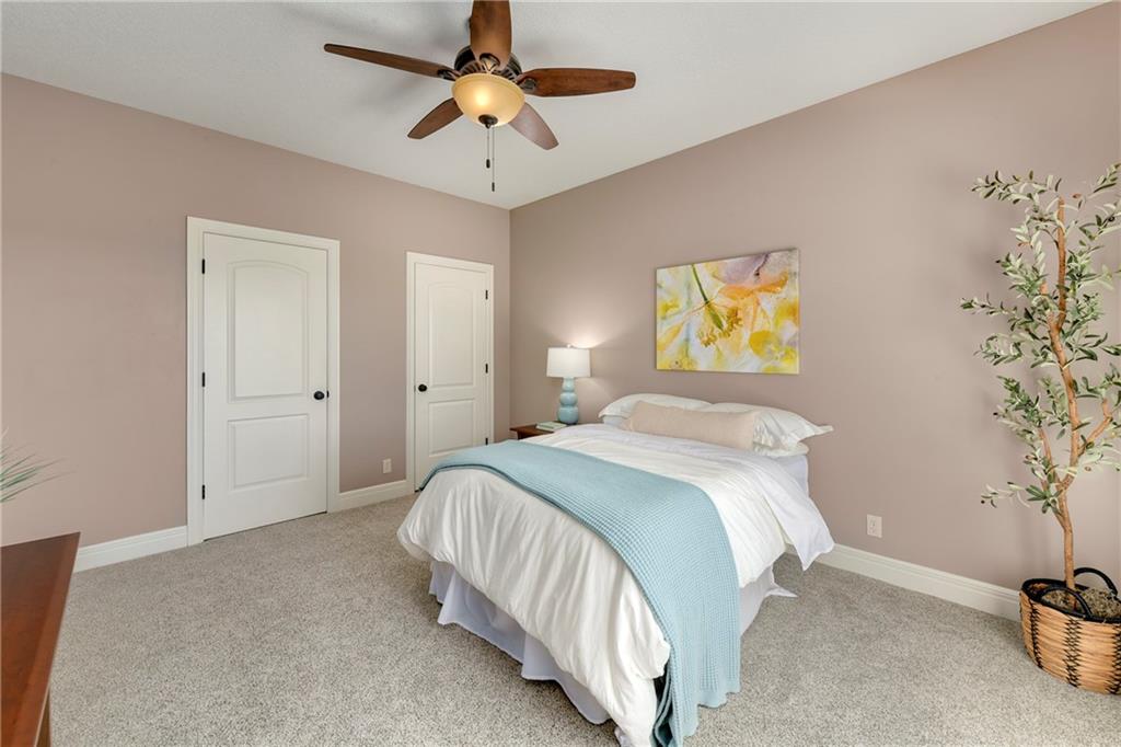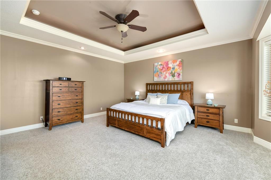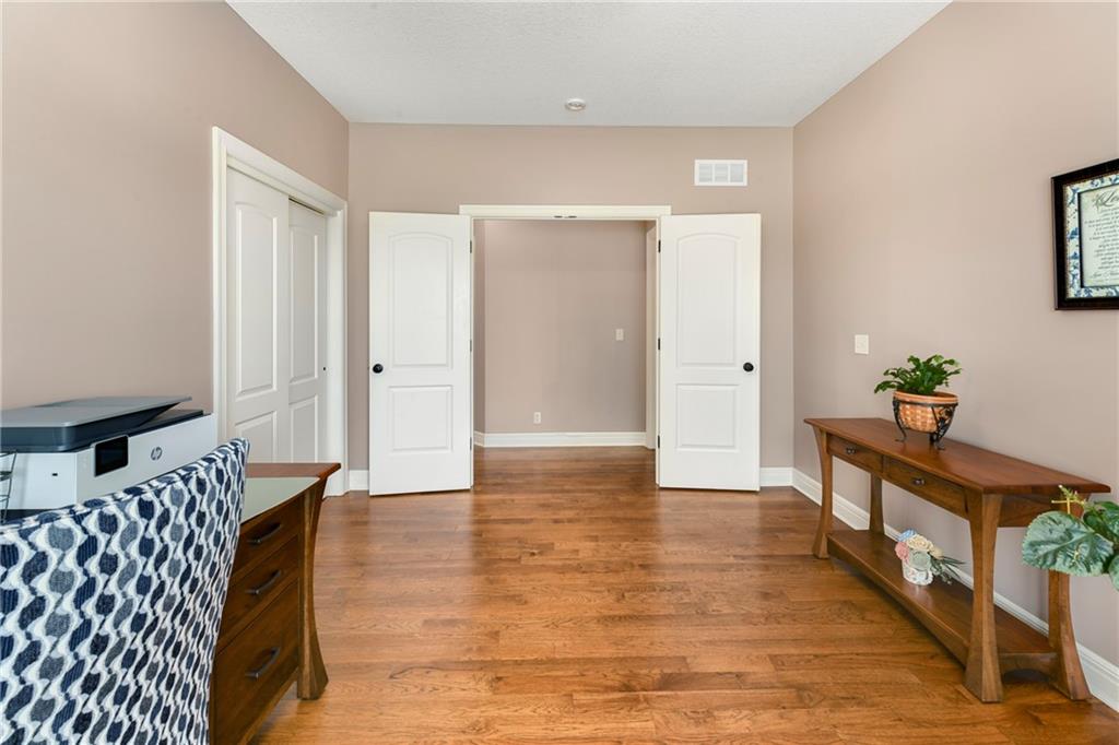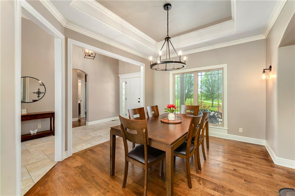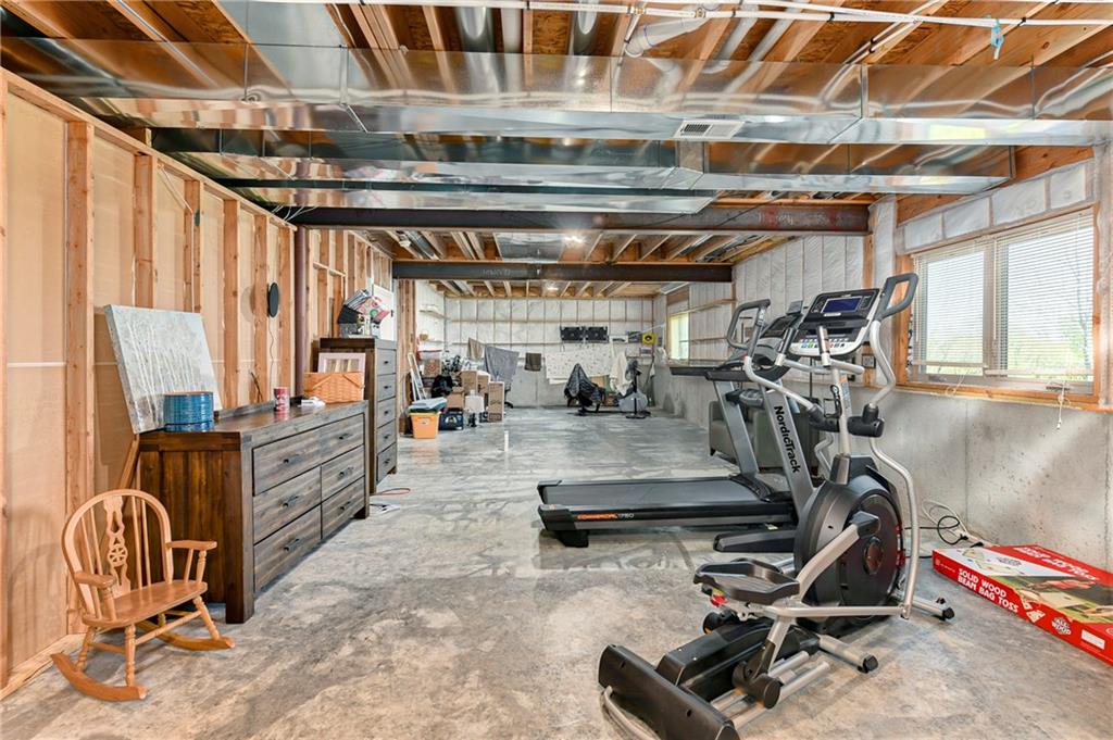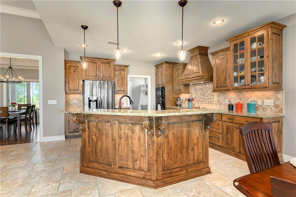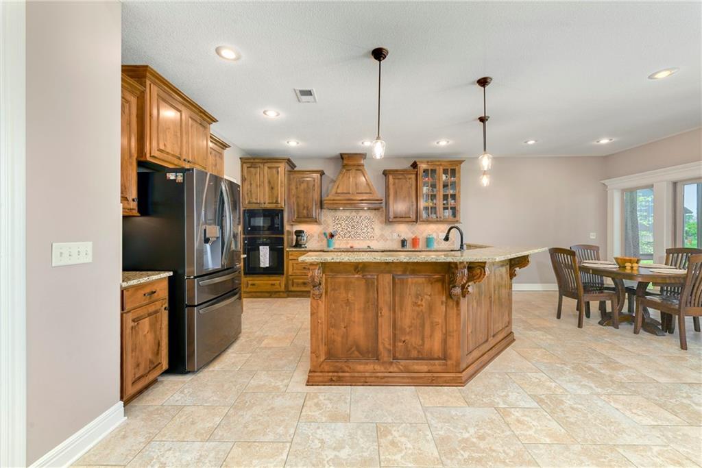 This stunning custom-built all-brick ranch sits majestically atop a hill, offering breathtaking views and the perfect blend of luxury and functionality. Designed for true main-level living, the home features three spacious bedrooms on the main floor. Two secondary bedrooms provide excellent flexibility for guests, family, or a home office—complete with abundant natural light and beautiful wood flooring. The expansive primary suite is a true retreat, easily accommodating large furniture and complemented by a spa-like ensuite featuring a walk-in shower, jetted soaking tub, double vanities, and an impressive walk-in closet. Enjoy both formal and casual living with a dedicated dining room and an open-concept kitchen equipped with a cooktop, granite countertops, stained wood cabinetry, and a large pantry. The kitchen flows seamlessly into the great room, where a striking stone fireplace and walls of windows showcase the property’s scenic surroundings. An enclosed four-season sunroom extends the living space, perfect for relaxing or entertaining year-round. Additional main-level conveniences include a drop zone off the garage, and a second laundry option in the pantry. The partially finished walk-out basement adds even more versatility with a fourth bedroom, full bathroom, family room, and a second laundry area. There is ample opportunity to expand, with space for two additional bedrooms and a fourth bathroom—featuring daylight windows for added comfort and value. Outside, the property truly shines with approximately 12 acres of agricultural land, plus an additional 2 acres surrounding the home. A massive 2,900 sq ft utility building includes solar power that saves tons on utility bills, ideal for a variety of uses. The property is fully fenced and secured with a grand electric entry gate. Enjoy the best of both worlds—peaceful country living with a prime location offering convenient access to everything the Kansas City area has to offer.