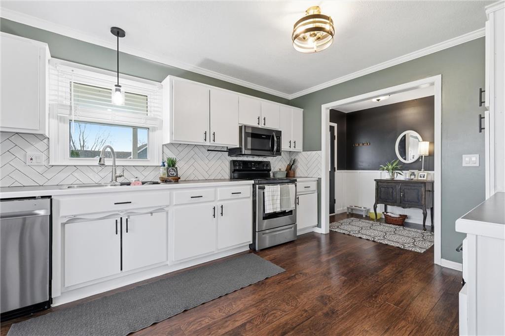 Welcome home to this beautifully maintained raised ranch in Raymore! From the moment you arrive, you’ll be charmed by the inviting covered front porch and standout curb appeal. Inside, this 3-bedroom, 2.5-bath home offers a seamless flow from the entry into the kitchen and spacious great room, complete with a cozy fireplace—perfect for both everyday living and entertaining. Stylish touches like wainscoting along the hallway add character, while the expansive layout continues with a unique loft space above the master featuring hardwood floors—ideal for a home office, reading nook, or flex space. Step outside and fall in love with your private backyard retreat! The full-length deck spans the entire back of the home and includes direct access from the primary suite—perfect for morning coffee or unwinding in the evening. The patio leads to a stunning 3-year-old in-ground pool, creating the ultimate setup for summer entertaining. All of this sits on a large, fenced lot offering both space and privacy. This home truly has it all—style, function, and an outdoor oasis you won’t want to miss!
