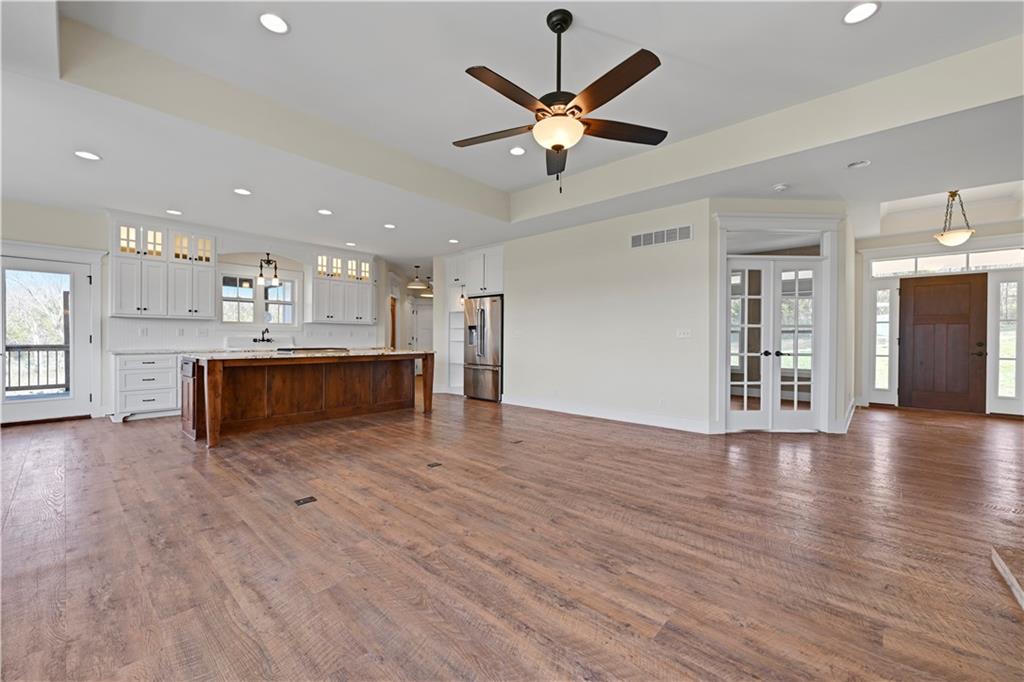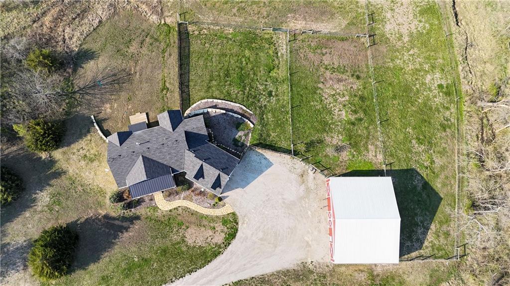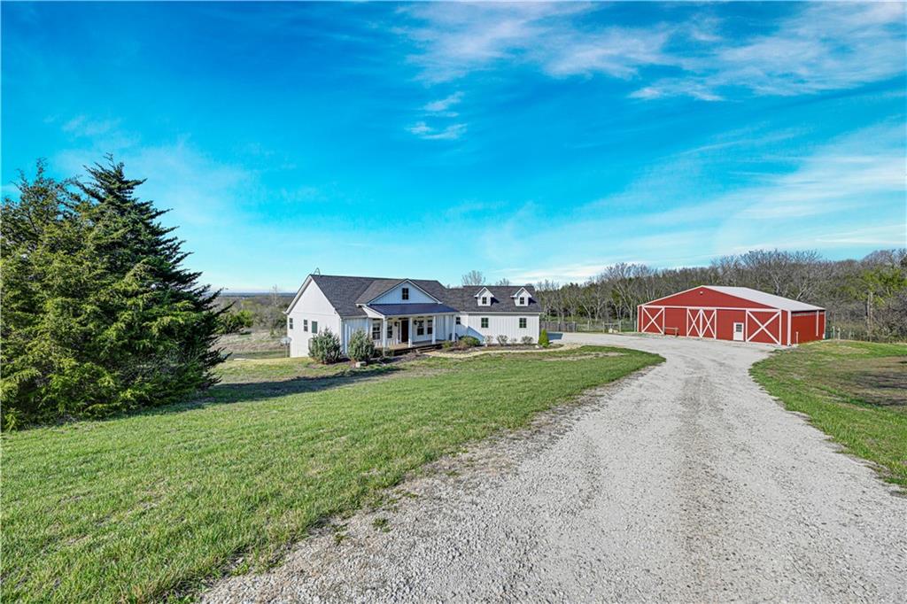 Just 30 minutes south of Overland Park, this peaceful retreat near Hillsdale Lake is your DREAM country property! Built in 2018, the reverse 1.5 story home STILL FEELS NEW with high quality finishes and lots of windows that capture the incredible views. Almost 8 private acres that adjoin the Army Corps of Engineer's land offer with a stocked shared pond on the north end of the property that is the perfect fishing spot. The nearby Hillsdale Lake trail system is over 50 acres and perfect for nature lovers or horse riding. A 54'x30' outbuilding with power and water has stalls for livestock or horses. Inside you'll find an open floorplan with 2 main level bedrooms and 2 more bedrooms in the walk-out lower level. Gorgeous kitchen with farmhouse sink and walk in pantry opens to the lovely hearth room living and dining rooms. Laundry room off the kitchen with extra storage. A dreamy screened in porch is the perfect spot to relax and take in the serene views of wildlife. The main level primary suite with a large walk in closet is a fabulous retreat. The lower level has a kitchenette and a large rec space and it’s own screened in porch. Take the cleared trail down to the lake that is shared by just a few other properties that touch it. Several fenced areas for riding or grazing. This property must be seen to be appreciated...don't miss it!