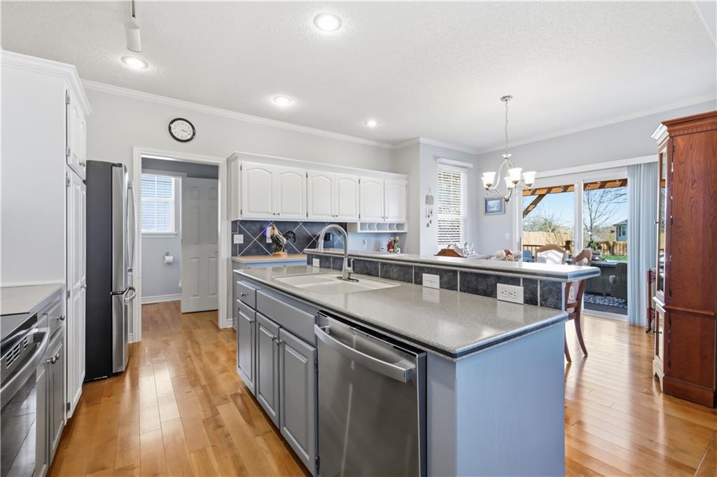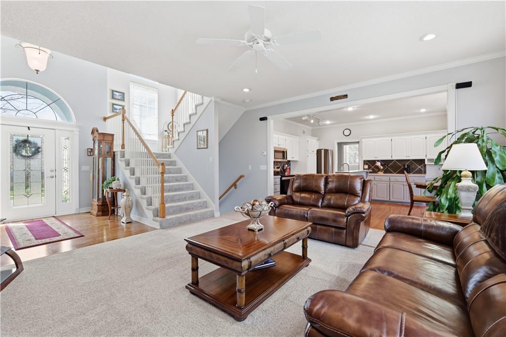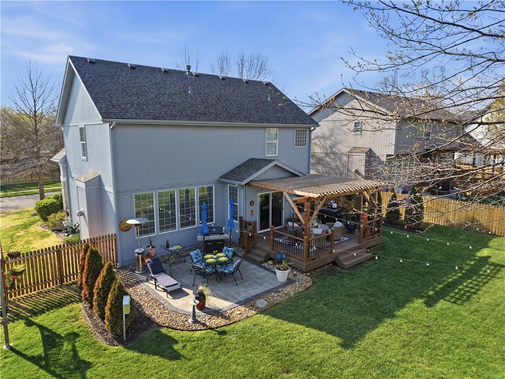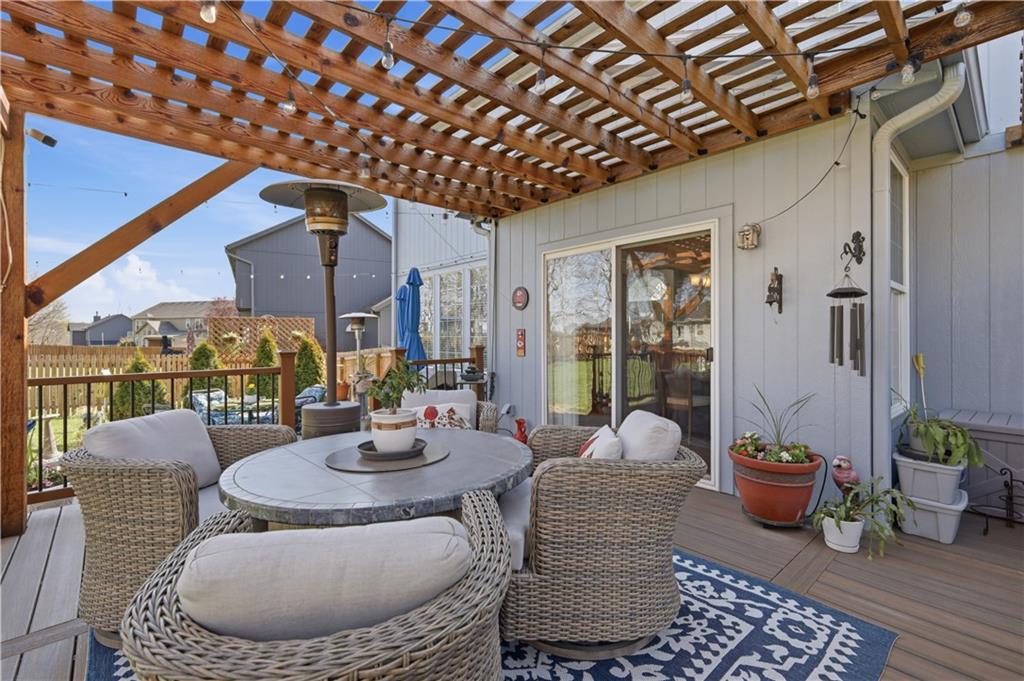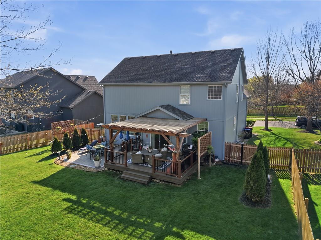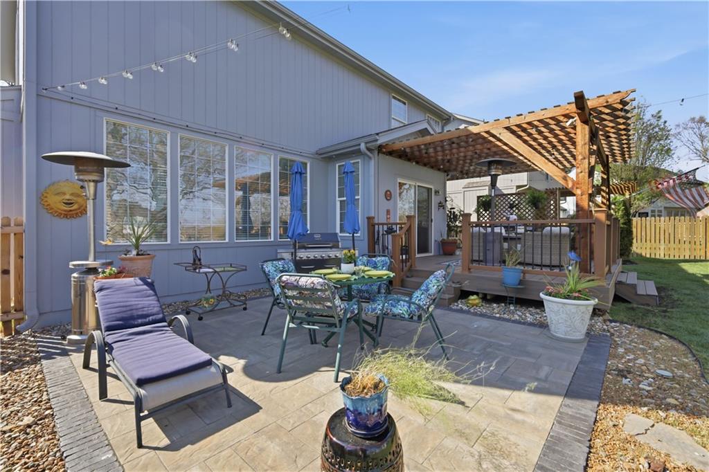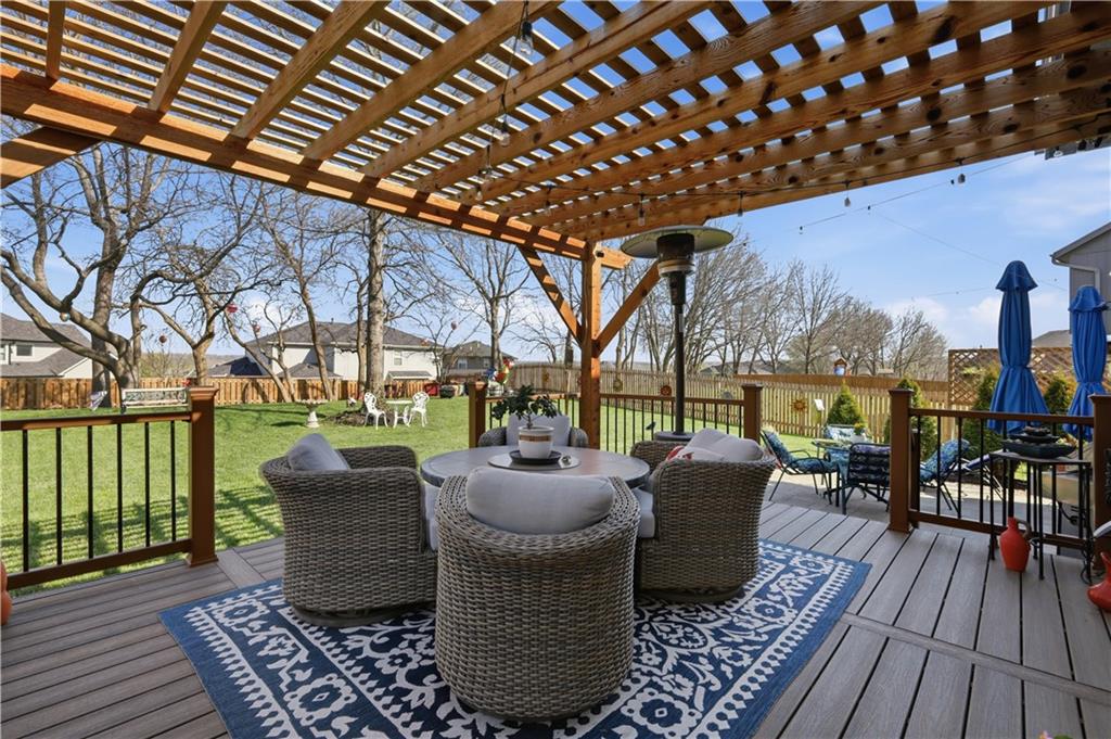 A truly beautiful 3 bedroom 2 1/2 bath property, awaits the discerning buyer. This meticulously maintained home features an open floor plan with two-story entry that leads to a spacious great room with gas fireplace. Wood blinds, lighting, crown molding and new carpeting are just a few of this home's updates. The kitchen features freshly painted cabinets, newer appliances, a large island and dining area. A convenient pantry, half bath and laundry room complete the first floor. Upstairs you’ll find a spacious primary suite with high ceilings, his & her walk-in closets and enough space for relaxing, an office area or possible nursery . Open the barn door and step into the primary bath with double vanity, separate shower and soaking tub. Two additional bedrooms on this level have large closets and are served by a Jack & Jill bath with double vanity and shower over tub. The lower level is used as a game room and fitness area, along with additional storage. It features freshly painted walls, floors and ceilings with exposed joists. The exterior of the home has been freshly painted and a new roof was installed in 2025. Step into your outdoor oasis with a large fenced backyard. Your entertainment begins under the pergola on the large Trex deck with an adjacent lower-level decorative paver patio. Admire the manicured lawn where hanging lights and miniature hot air balloons adorn the mature trees and solar accent lighting. All of these features combine to offer you an amazing outdoor living experience. Thank you for considering this lovely home in the highly regarded, Clearing at Cross Creek. A neighborhood in the highly rated DeSoto school district. With access to two beautiful parks, miles of trails and a community pool. As you leave the home you'll pass Clear Creek Elementary, Monticello Middle School and Mill Valley High School, all located just a very short distance down the road. SELLERS HAVE HAD THEIR HOME PRE-INSPECTED BY KANSAS CITY HOME INSPECTION