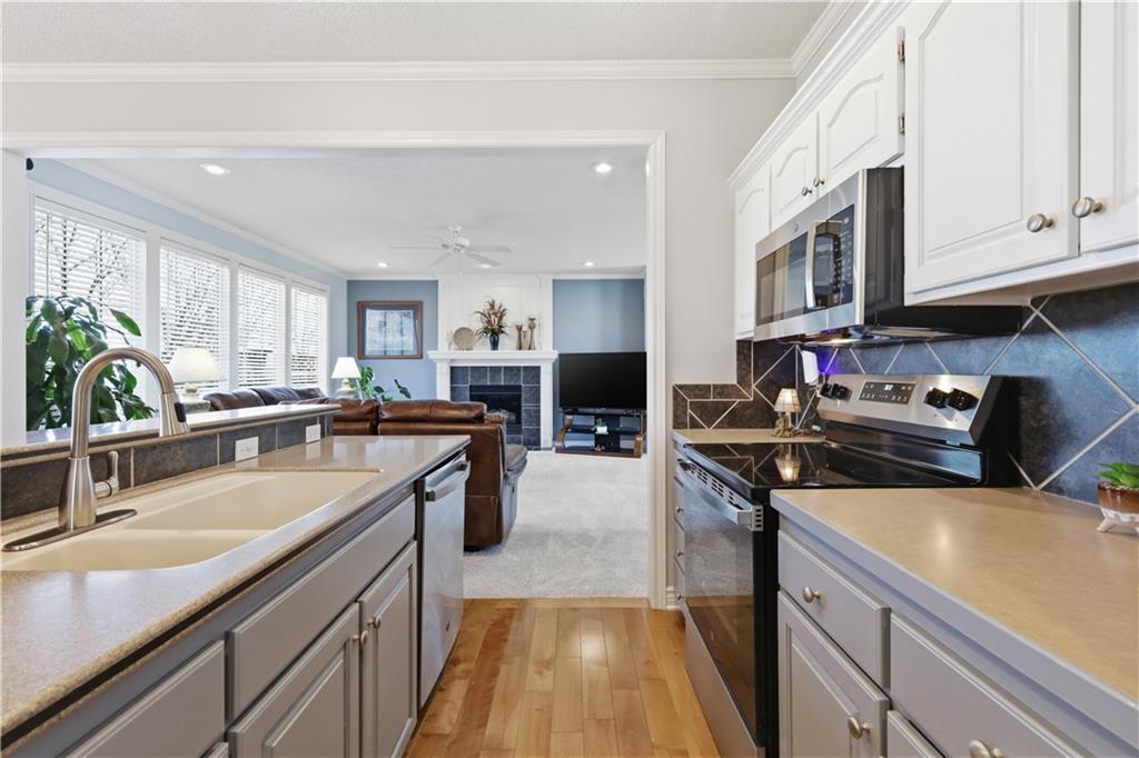 435 North to Shawnee Mission Parkway West to Woodland Road. Right on Woodland Drive to Clear Creek Parkway to Lone Elm Road left on Lone Elm Road. Home will be on your left. For HOA information and more details about this neighborhood, visit www.ClearCreekHOA.com