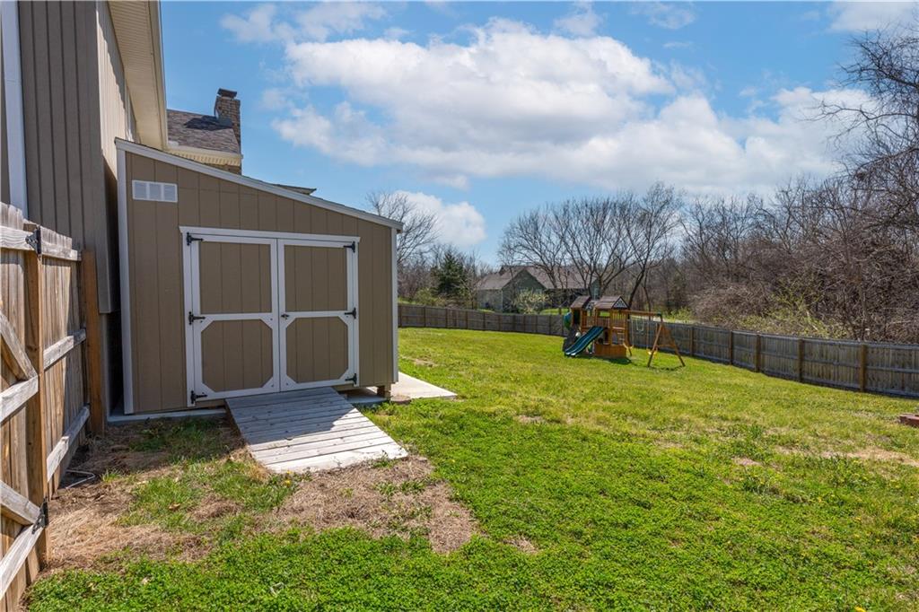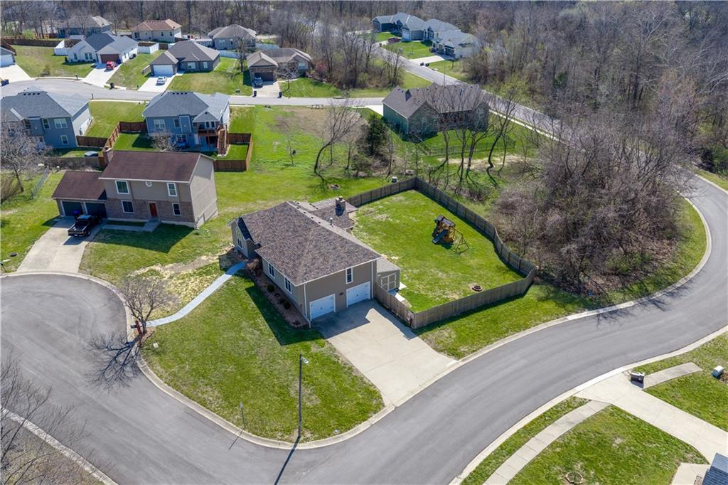 Welcome home! This beautiful home is ready for new memories! Situated on a large corner lot of a cul de sac, within a few minutes of shopping, restaurants, and 50 Hwy for commuting to Whiteman AFB or Kansas City. New wood-look LVP (sellers installed in 2025) runs throughout the main level spaces. The spacious Living Room showcases tall ceilings and a gas fireplace perfect for those chilly winter days. Off the living room is the Kitchen, Breakfast nook and a full Dining Room with lots of natural sunlight. The inviting Kitchen has ample wood cabinets with pantry, solid surface countertops, tile backsplash and stainless-steel appliances that all stay. The main level includes 2 secondary Bedrooms, hallway Bathroom with Laundry, the Primary Bedroom with 2 closets and en-suite Bathroom. Downstairs you will find the Family Room which could be used as second Primary Bedroom with a spacious walk-in closet, an en-suite Bathroom with double sinks and beautifully tiled shower with two shower heads. Head out the patio doors to enjoy time outdoors in the large, privacy fenced back yard (swing set can stay). There is an additional non-conforming room in the basement that would be perfect for an office, 5th bedroom, playroom, etc. You will appreciate the additional storage space in the garage as well as the EV charging station, built-in shelves and workspace. The back deck has new stairs leading down to the newly poured patio extension and storage shed, all added by sellers in 2024. Roof, gutters, and downspouts are just 2 years old! Don't miss out on this wonderful opportunity!