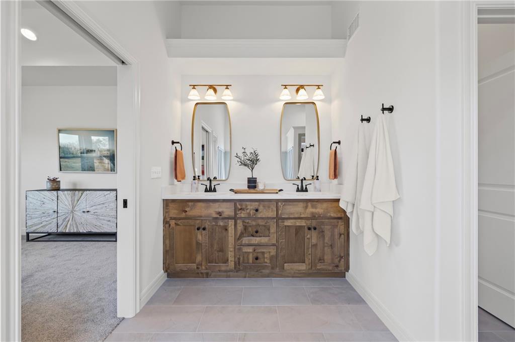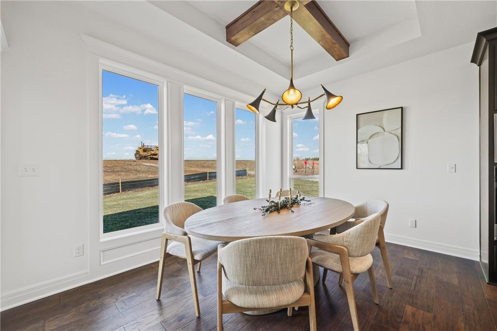 Welcome to this custom-built home in Little Blue Estates, where modern design meets everyday function. Conveniently located near major highways, shopping, and dining, it combines comfort and style, with quality craftsmanship and intentional design throughout. Situated on a spacious walkout/walk-up corner lot, the home offers strong curb appeal with board-and-batten siding, stone accents, a 3-car side-entry garage, and a covered front entry. Inside, the open layout is filled with natural light, soaring ceilings, hardwood floors, and a floor-to-ceiling stone fireplace. The living area flows into a well-designed kitchen with a large center island, custom cabinetry, designer lighting, and a walk-in pantry. The dining area is surrounded by windows with peaceful views. The layout offers privacy with a spacious primary suite featuring a walk-in tiled shower, dual vanities, and a large walk-in closet with custom shelving. The lower level includes a large rec room with a wet bar, plus two additional bedrooms, a full bath, an office, and a play space under the stairs with a Dutch door. Upstairs, extend your living space on the covered deck. Community pool construction will begin during phase three—walking distance to Little Blue Elementary, with Independence taxes and utilities. Photos are from a previously built home, so finishes may vary. Over $23K in planned upgrades are included at the current list price, with the option to reduce cost by adjusting selections.