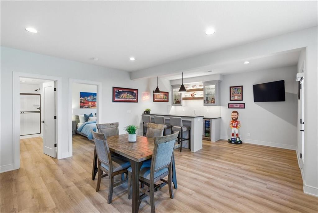 This absolutely gorgeous, single-owner 2020 new build still looks and feels like the final touches were just applied! High-end finishes, fresh paint, an incredible amount of space and beautiful views all await you in this Chapel Hill stunner. The open concept main level invites you in with wide-plank wood floors, soaring ceilings, and sophisticated fixtures. The dreamy kitchen features natural wood-toned cabinets, granite countertops, a large walk-in pantry and gleaming stainless steel appliances. In a perfect setup for entertaining, the formal dining area next to the kitchen will impress any dinner guest with huge windows, a built-in buffet for classy serving and storage, and eye-catching floating shelves to display your favorite dishes. The cozy yet spacious living area features a beautiful gas fireplace flanked by stylish built-in cabinets, gorgeous lighting, and easy access to the screened-in porch. The sprawling primary suite will be your perfect oasis, complete with a modern wood-paneled ceiling, massive shower and double vanity, expansive walk-in closet, and direct access to the laundry room. On the other side of the main floor, two more beautifully appointed bedrooms and a second full bath complete this incredible main floor, and we haven’t even gotten to the finished, walkout basement yet! A second sprawling living area, beautiful wet bar, home gym, large fourth bedroom and third full bath offer so many additional possibilities to enjoy this truly special home. Outside, a lush and level fenced lot with a covered patio is sure to be the canvas for many summer memories playing in the yard, grilling out, and enjoying this sought-after neighborhood. Welcome home!