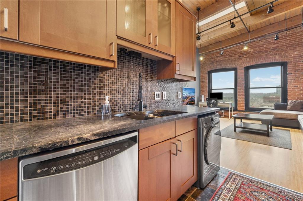 Top-floor living hits different—and this one proves it. Perched on the 5th floor at Atriums East at Soho West, this one-bedroom condo brings together the kind of character and convenience that’s hard to find in one place. Vaulted ceilings, exposed brick walls, and a skylight give the space a loft-style feel with natural light that changes throughout the day. It’s the kind of place that feels good the second you walk in. Being on the top floor means more than just better views. It means privacy, quiet, and no footsteps overhead. Just your space, your pace. Inside, the clean, modern finishes keep things simple and sharp. The washer/dryer combo makes everyday living easy, and you’ve also got access to additional laundry in the building when needed. But what really sets this apart is the lifestyle. You’re not just buying a condo—you’re plugged into two buildings worth of amenities. Enjoy the pool and secured access at Atriums East, plus full access to the Atriums at Soho West across the street, where you’ll find a second gym, hot tub, sauna, and the West Building Social Room for hosting or hanging out. Your dedicated storage unit is there as well. And the location? About as convenient as it gets. Quick highway access puts you minutes from just about anywhere in the city, whether you're heading to work, meeting friends, or getting out of town. If you’re looking for a low-maintenance space with character, light, and a little bit of edge—this is it.