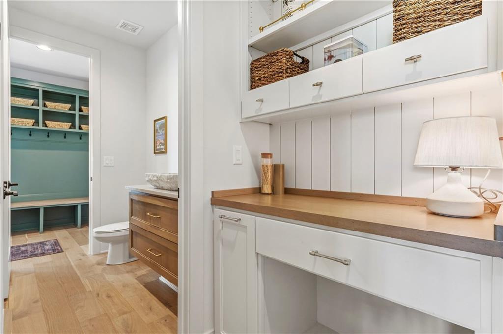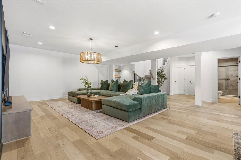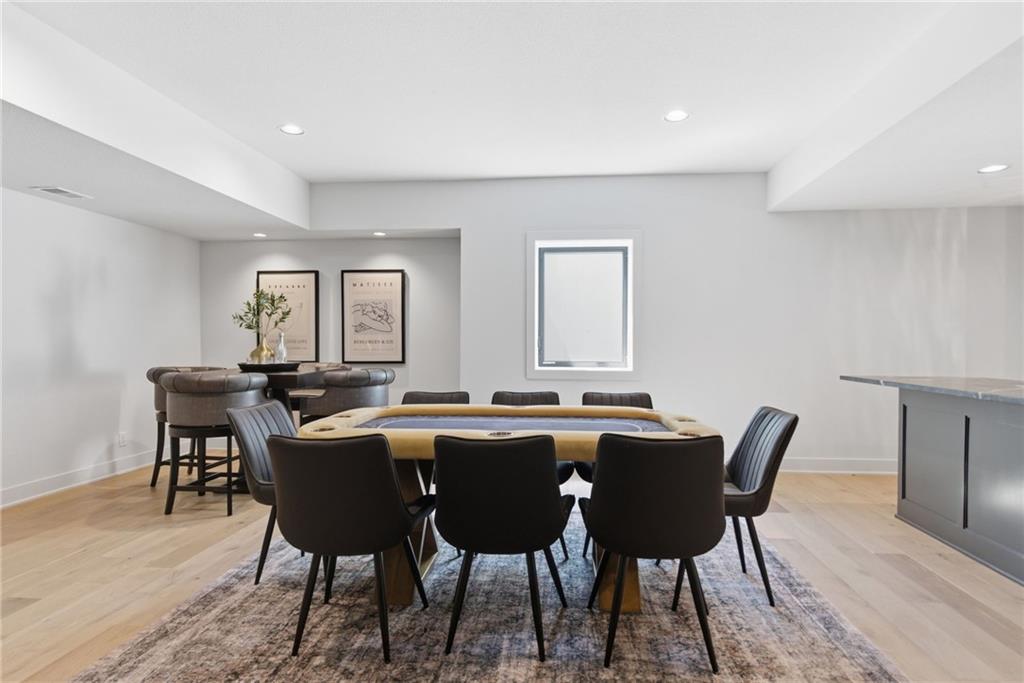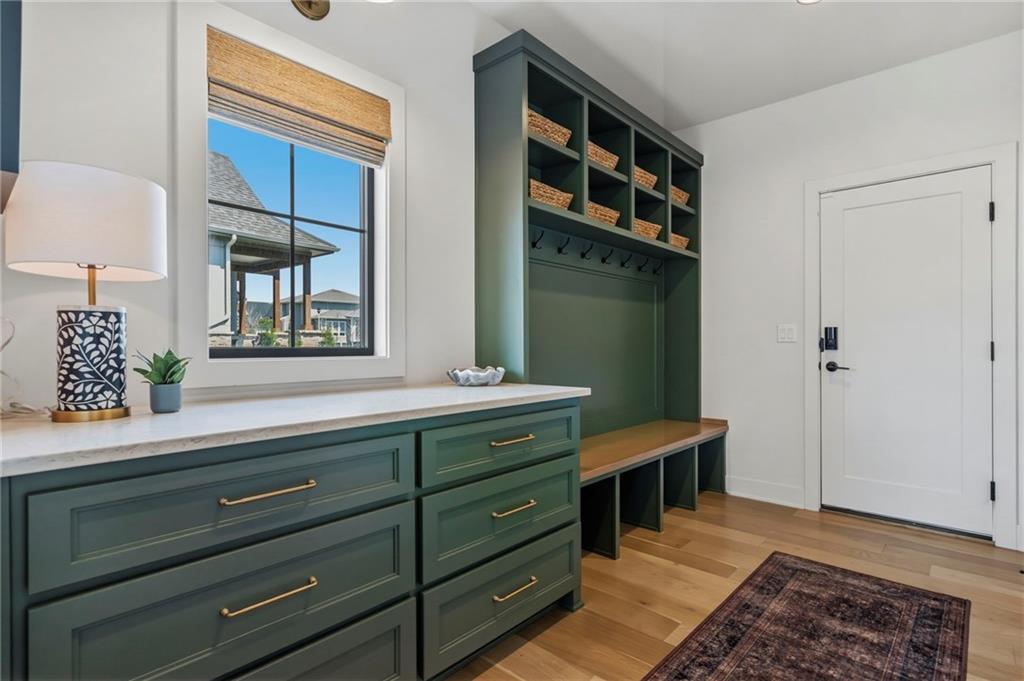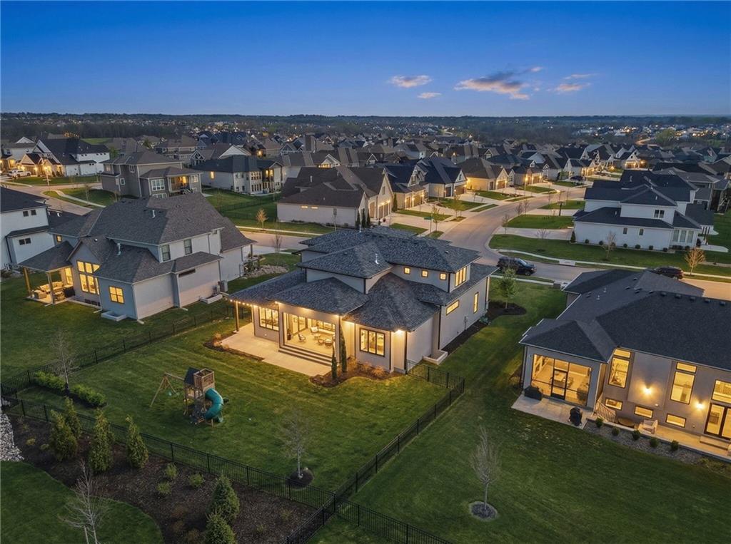 The kind of home where the design speaks for itself from the start. Originally built as the Bickimer Roosevelt 1.5-story model for the Parade of Homes, it carries a level of detail and intention that stands apart. Natural light, tall ceilings, and a striking great room with a cast stone fireplace and wood beam ceiling set the tone, while oversized glass doors create a strong sense of arrival. The kitchen is equally considered, featuring Taj Mahal quartzite, a statement plaster hood, reeded cabinetry, and a full butler’s pantry tucked just behind. Arched openings, custom millwork, and a bold sage mud hall bring depth and character throughout. This home goes beyond what is typically seen, with added upgrades including automatic window coverings throughout, a fully fenced backyard, epoxy garage floors, and elevated selections carried across every space! The main-level primary suite offers a quiet, retreat-like feel, while upstairs includes a loft and reading nook. The finished lower level is designed for entertaining with a bar, media space, full bath, and sauna. Set in Century Farms in the Blue Valley School District, the neighborhood offers a clubhouse, fitness center, resort-style pool, pickleball, and more, all just minutes from Bluehawk, parks, specialty grocers, dining, and everyday amenities!